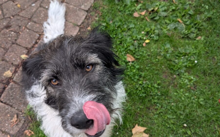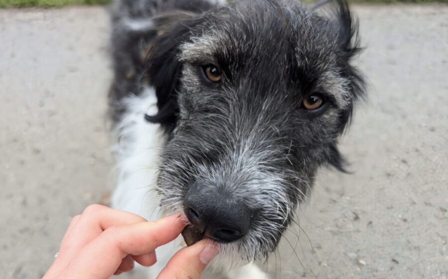 Matilda ist gut an der Pflegefamilie orientiert und ist außerdem gut fixiert an den Menschen, mit denen sie unterwegs ist. Mittlerweile hat sie „Sitz“ gelernt und kennt ihren Namen. Wenn sie gerufen wird, kommt sie freudig angerannt.