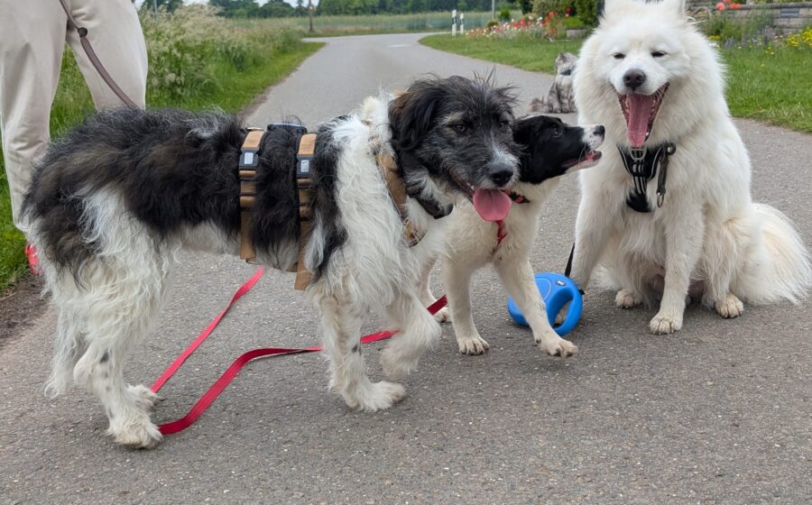 Die tapfere Matilda durfte im Mai in ihre Pflegestelle reisen und hat sich dort mittlerweile gut eingelebt. Die junge Hündin ist nach einiger Anfangsschüchternheit, aufgeweckt, interessiert und aktiv. Sie liebt es, wenn alle Türen zum Garten offen sind und sie sich ihren Ruheort selbst auswählen darf. Egal ob drinnen im Treppenhaus, draußen in der Sonne oder aktiv sein und spielen mit den anderen – Matilda genießt es, dass sie endlich einfach ein Hund sein darf. Dabei liegt sie auch gern auf der Wiese oder zerstört auch den ein oder anderen Maulwurfhügel.