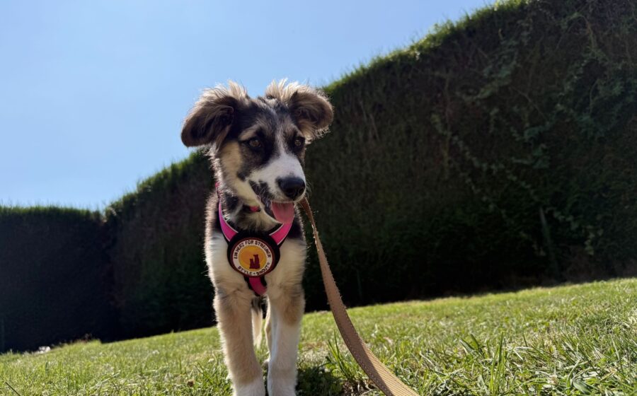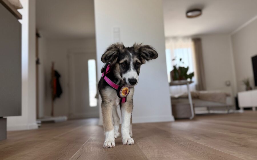 Bei fremden Geräuschen ist sie noch schreckhaft, doch ihre Neugier siegt schnell. Sie bellt bisher kaum, fährt ruhig im Auto mit und beobachtet aufmerksam ihre Umgebung.