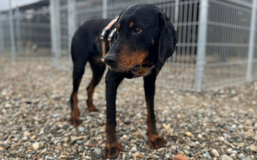 Manchmal sagen Augen mehr als tausend Worte. Wenn man in Mikkels Augen schaut, sieht man eine tiefe Erschütterung, die das Herz schwer macht, aber auch einen winzigen Funken Hoffnung, den er noch nicht ganz aufgegeben hat. Mikkel ist ein stattlicher, großer Rüde – optisch ein Bracken-Mischling, vielleicht sogar ein reinrassiger Erdélyi Kopó (Siebenbürger Bracke) – der im öffentlichen Shelter von Bistrita landete. Seine Geschichte liegt im Dunkeln; warum er letztlich auf der Straße landete, bleibt reine Spekulation. Doch auch wenn er körperlich gepflegt wirkt, so ist seine Seele sichtlich gezeichnet.