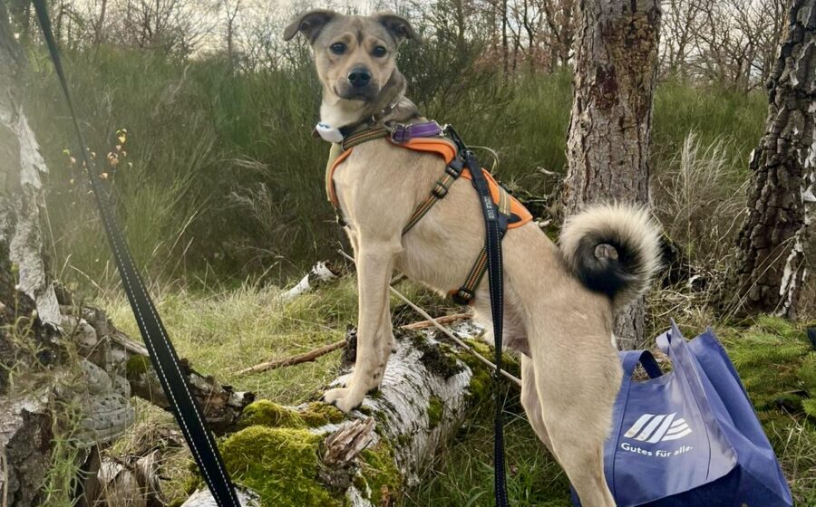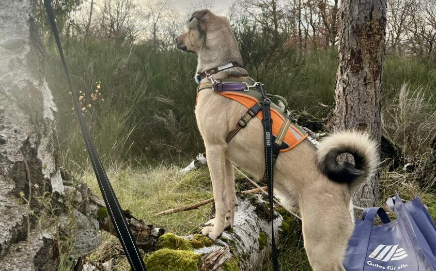 Bei Fremdpersonen, besonders Männern, zeigt sich Milos Unsicherheit deutlicher. Während er bei Frauen mit etwas Anleitung, freundlicher Ansprache und einem Leckerli schnell auf Auftau-Modus schaltet, fehlt ihm bei Männern aufgrund seiner Vorgeschichte noch das Vertrauen. Hier kann er nach vorne gehen, weshalb er sicherheitshalber weiter mit Maulkorb trainiert wird. Aktuell lernt Milo konsequent, dass er bei Überforderung nicht nach vorne gehen darf, sondern sich hinter seiner Bezugsperson orientieren soll. Er arbeitet fleißig mit – ihm fehlen einfach positive Erfahrungen, die er nun Schritt für Schritt nachholen darf.