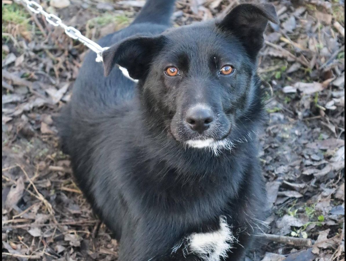 Mindy ist mit etwa 7 Monaten noch ein Hundekind. Sie ist jung und wunderschön mit ihrem schwarzen glänzenden Fell. Der weiße Fleck auf ihrer Brust blitzt vorwitzig hell hervor. Mindy ist jetzt etwa 50 – 53 cm groß. Wir schätzen, dass sie eine mittelgroße ausgewachsene Hündin werden wird. Mindy ist eine lebenslustige und fröhliche Hündin, die die Aufmerksamkeit und Zuneigung der Pflegemenschen hingebungsvoll genießt, Kuscheln ist für sie das Größte. Vor allem in die Kinder ist Mindy ganz vernarrt und liebt sie abgöttisch. Sie versteht sich gut mit den anderen Hunden der jetzigen Unterkunft, Katzen hat sie noch nicht kennengelernt. Leider kann Mindy zurzeit nur an der Kette gehalten werden, da das Gelände nicht komplett gesichert ist und die Pflegestelle Sorge hat, dass das kleine unternehmungslustige Hundemädchen auf Wanderschaft geht. Mindy ist jetzt sicher und versorgt, aber ihr fehlt etwas ganz Entscheidendes: Eine eigene Familie, die sie liebt, bei der sie durch den Garten toben und bei der sie sich frei und geborgen fühlen kann. Ende Januar 2026 kann Mindy ausreisen, und sie hofft auf Menschen, die sich in sie und ihre charmante Wesensart verlieben.