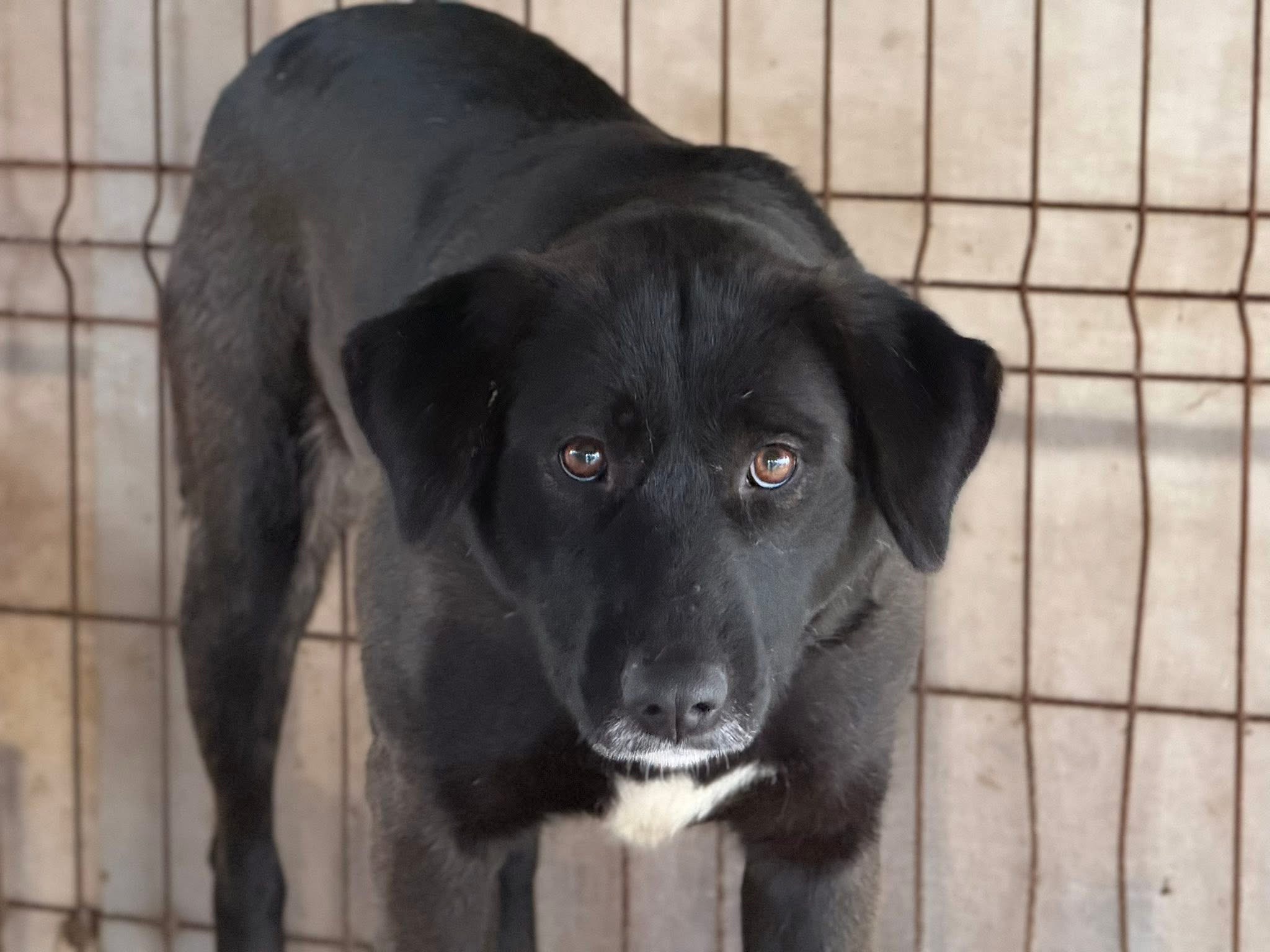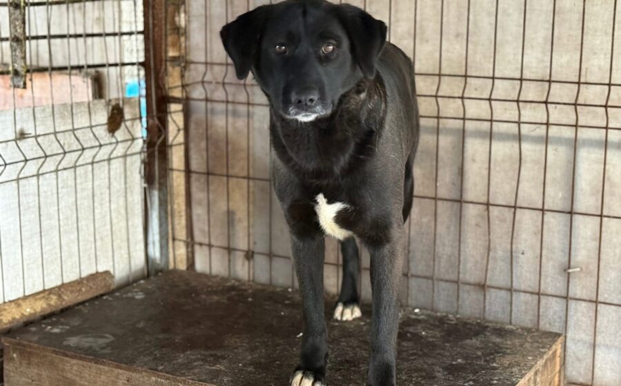 Mit einer Schulterhöhe von etwa 55 bis 60 cm gehört Minna zu den mittelgroßen Hündinnen. Sie hat kurzes schwarzes Fell mit weißen Abzeichen an den Pfotenspitzen, an der Brust und am Kinn. Ihr Schwanz ist verkürzt, weshalb eine Vermittlung in die Schweiz leider nicht möglich ist. Ihre braunen Augen wirken sanft und nachdenklich – sie erzählen von Vorsicht, aber auch von Hoffnung. Minna ist etwa ein Jahr alt und steht noch ganz am Anfang ihres Lebens.