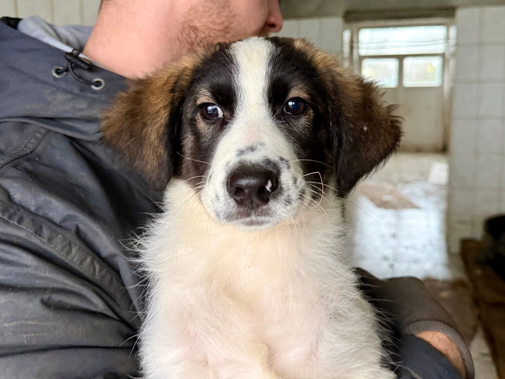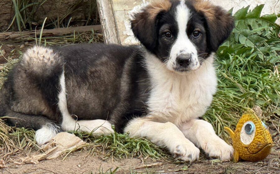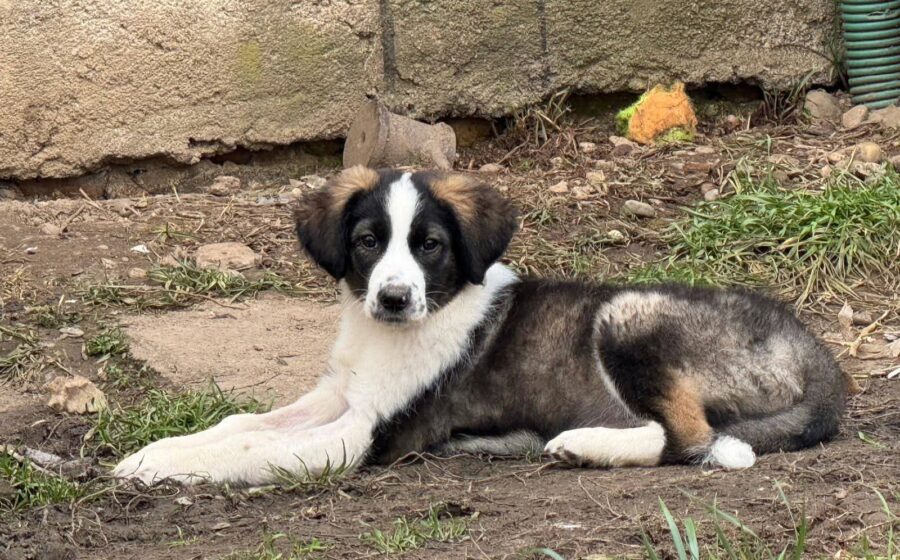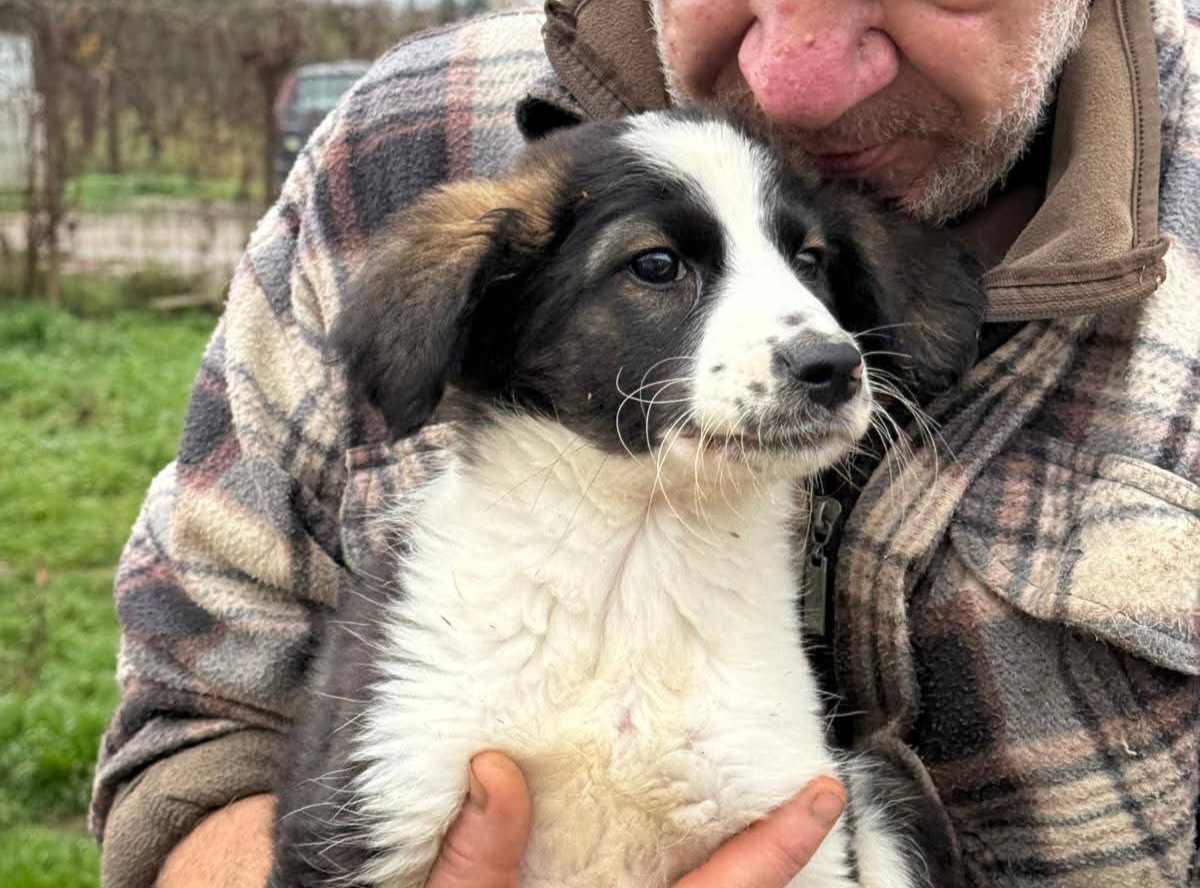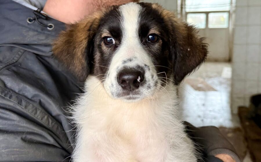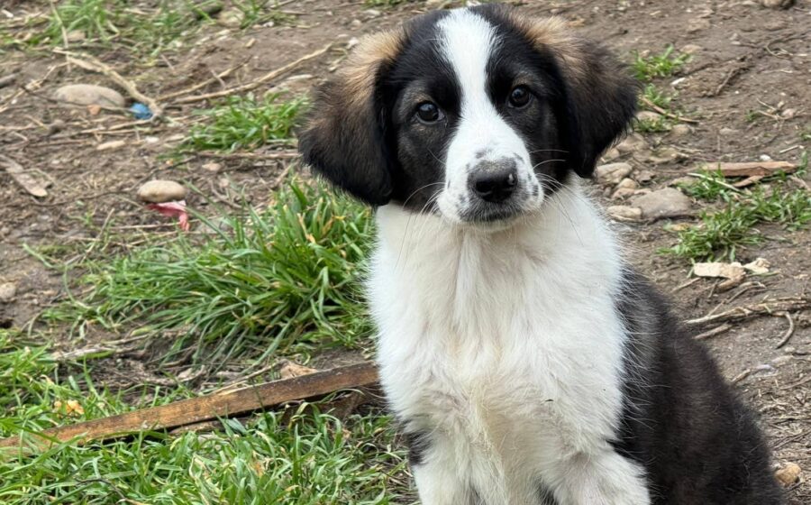 Optisch ist Minou ein echter Hingucker: Ihr weiches Fell ist weiß, schwarz und braun gefleckt und ihre niedlichen Punkte auf der Schnauze machen sie unverwechselbar. Rein optisch können wir nicht ausschließen, dass Minou auch Herdenschutzhund-Eigenschaften mitbringt. Ausgewachsen wird sie vermutlich mittelgroß bis groß.