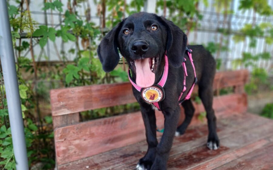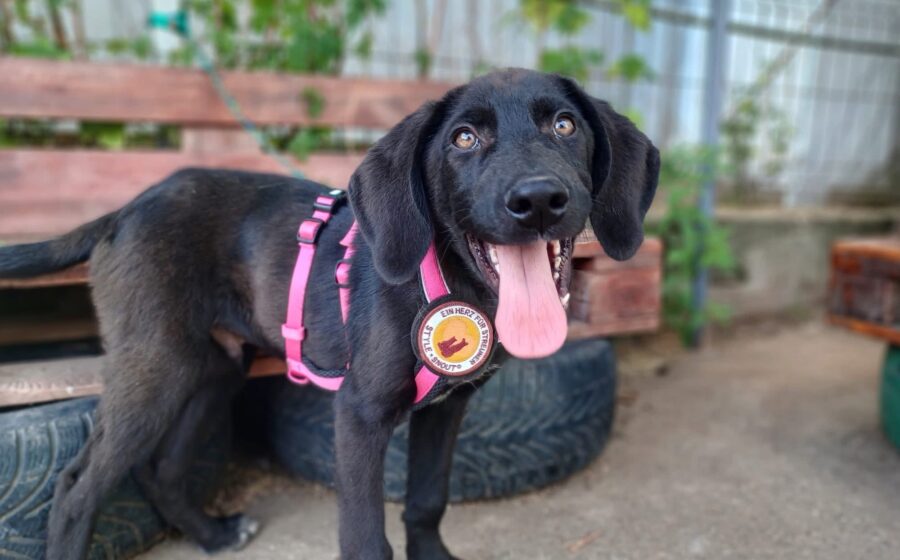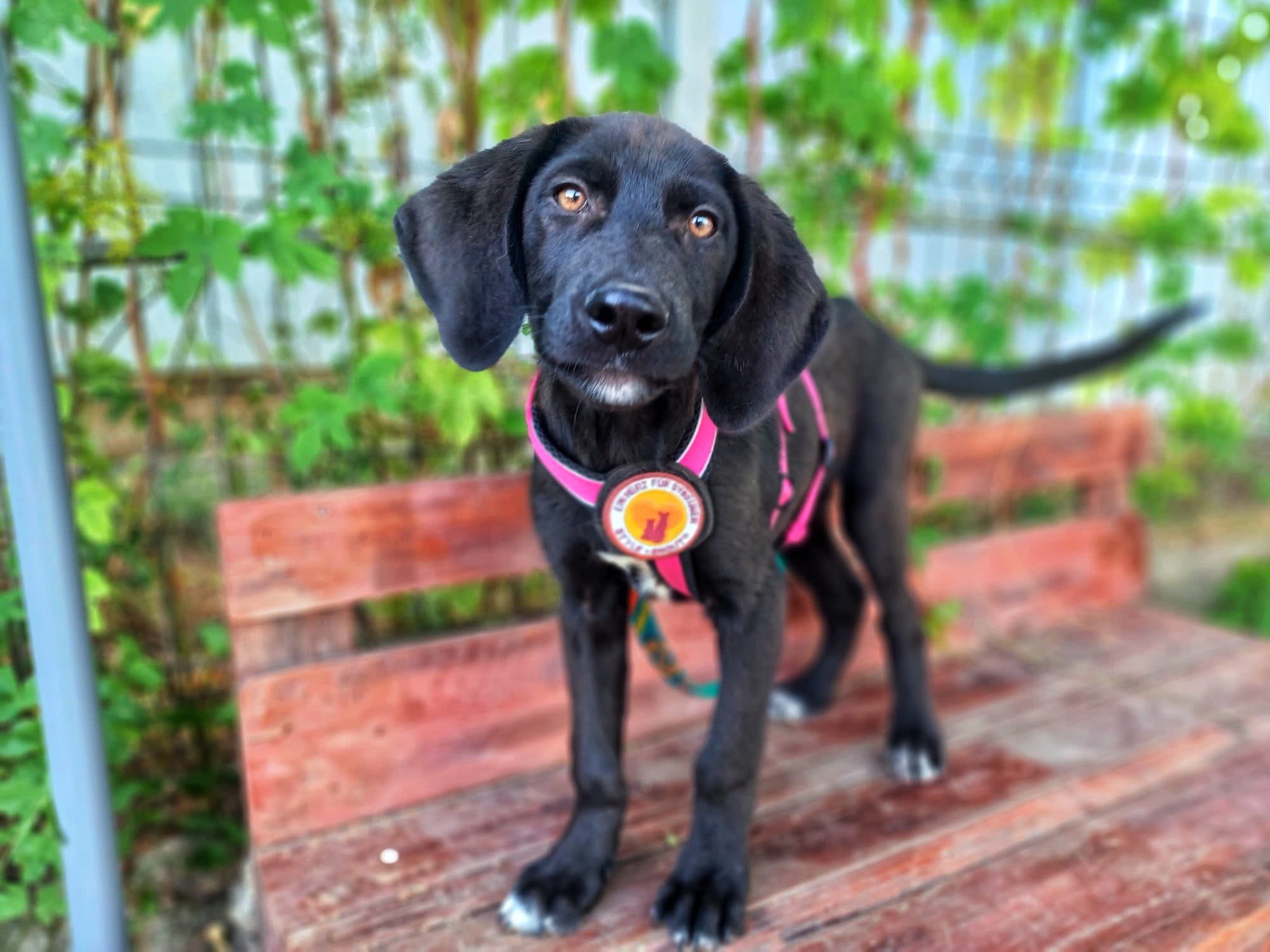 Glänzendes, schwarzes Fell, riesige Schlappohren und ein kleines, weißes Milchbärtchen – das ist Mio! Mit seinen 40 cm und 8 kg ist er einfach unwiderstehlich und erobert jedes Herz im Sturm. Ausgewachsen wird er vermutlich einmal mittelgroß bis groß werden. Er ist die pure Freundlichkeit auf vier Pfoten, kommt aktiv auf dich zu und liebt es, gestreichelt zu werden. Außerdem spielt er für sein Leben gern draußen. Er ist unglaublich gelehrig und würde super als Familienhund passen.