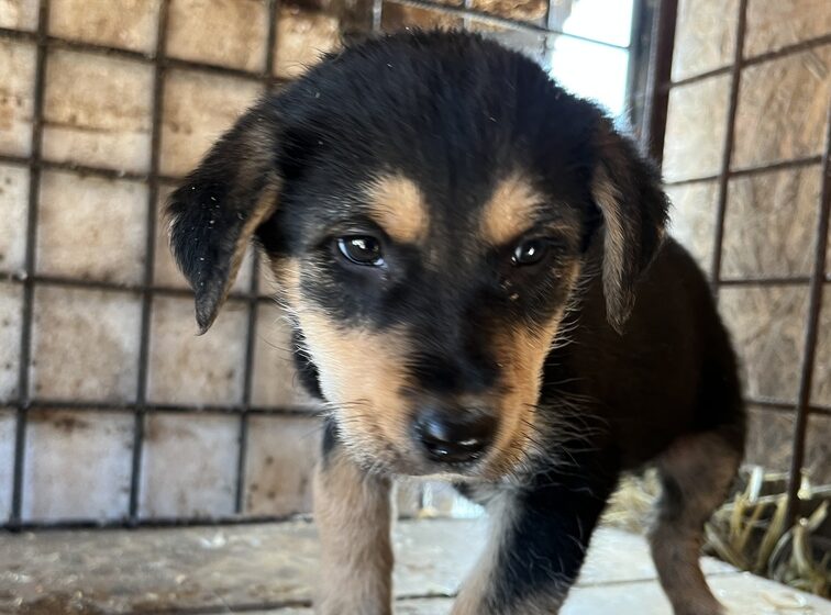 Die kleine Mira ist etwa 7 Wochen alt und steht noch ganz am Anfang ihres Lebens. Zusammen mit ihrer Mama Emmi und ihren sechs Geschwistern Rumi, Zora, Maura, Allie, Bente und Lexa wurde sie auf der Straße gefunden und anschließend in ein Shelter gebracht. Dort ist die kleine Hundefamilie nun in Sicherheit und darf hoffen, schon bald in ein liebevolles Zuhause ziehen zu dürfen.