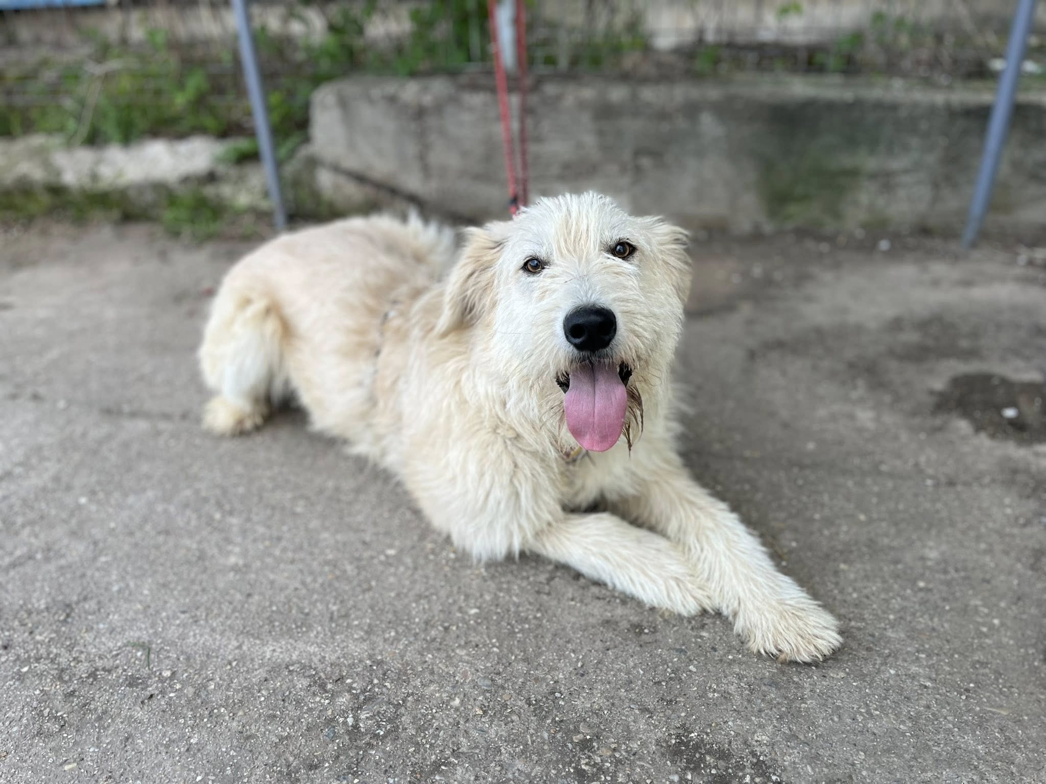 Mit anderen Hunden ist sie gut verträglich. Ob das auch für Katzen gilt, konnte noch nicht getestet werden. Aufgrund ihrer Optik können Hüte- oder Herdenschutzhundgene nicht ausgeschlossen werden. Daher wünschen wir uns ein ländliches Zuhause für sie, ohne Stadttrubel und ohne viel wechselnde Bezugspersonen.