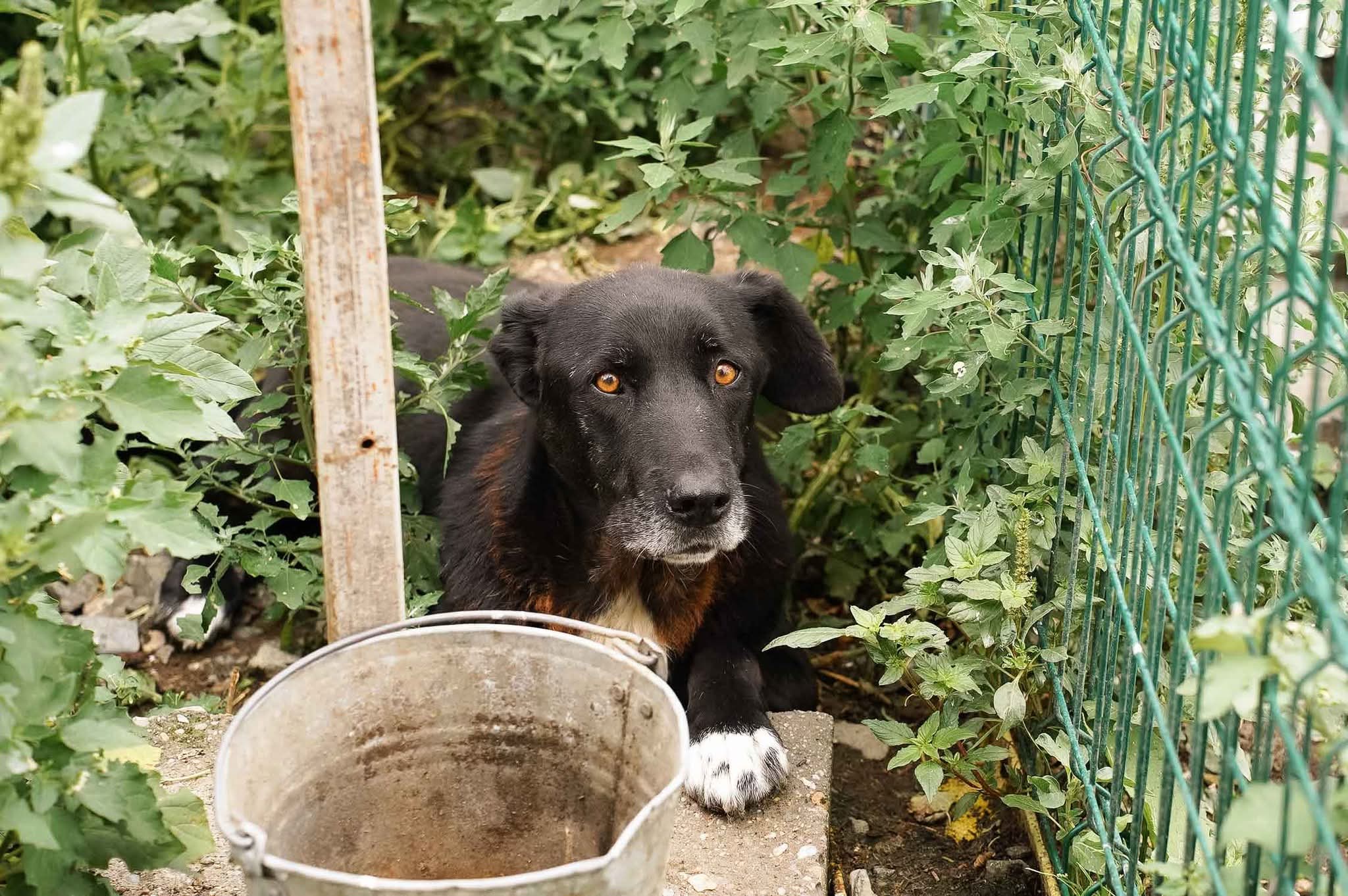 Mit seinen ca. 8 Jahren bringt er ca. 55 cm Schulterhöhe mit und gehört damit zu den großen Jungs. In seinem eigentlich schwarzen Fell schimmern mittlerweile einige braune, aber auch schon graue Härchen durch. Mit seinen weißen Pfoten und dem weißen Latz, sieht er aber immer noch aus wie ein kleiner Gentleman, der durch dicken Schnee gestapft ist. In Busag lebt er auf einem großen eingezäunten Gelände mit ca. 70 Hunden zusammen, allerdings hat hier kaum Jemand Zeit sich angemessen mit ihm zu beschäftigen. Mit anderen Hunden kommt Mojo im Shelter gut zurecht.