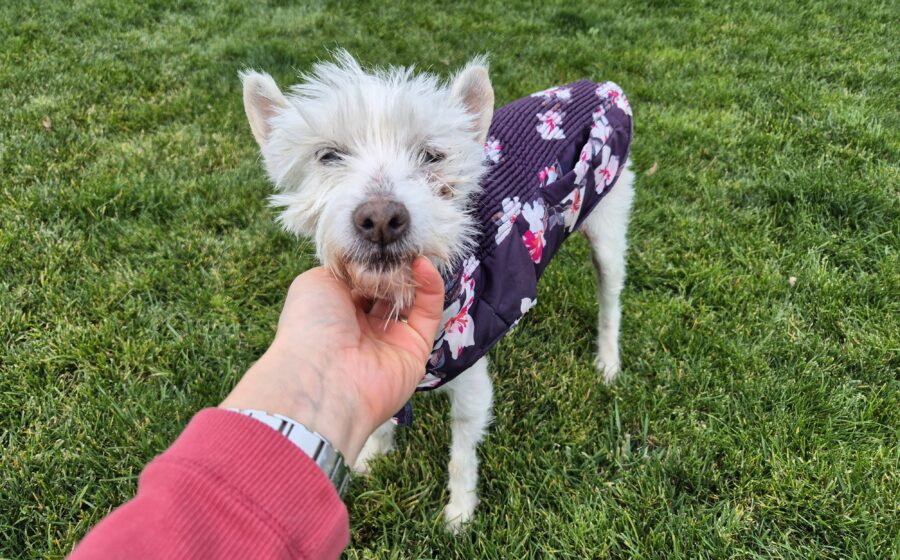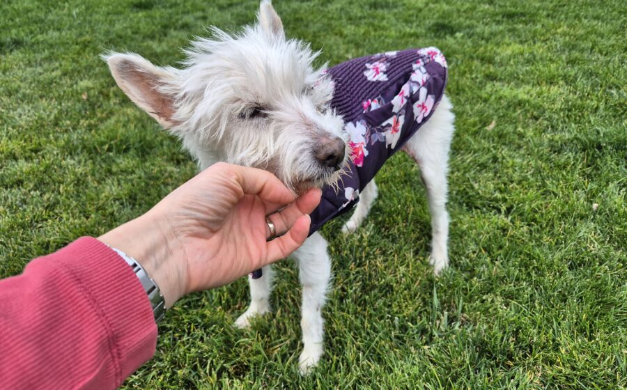 Als Mona zu uns kam, war körperliche Nähe zunächst schwierig für sie – Streicheleinheiten verunsicherten sie, und auch Leine sowie Geschirr machten ihr Angst. Doch dank der geduldigen Fürsorge ihrer Pflegestelle hat sie große Fortschritte gemacht: Sie lässt sich inzwischen gerne anfassen und läuft gut an der Leine. Auch Menschen gegenüber wird sie immer neugieriger und mutiger.