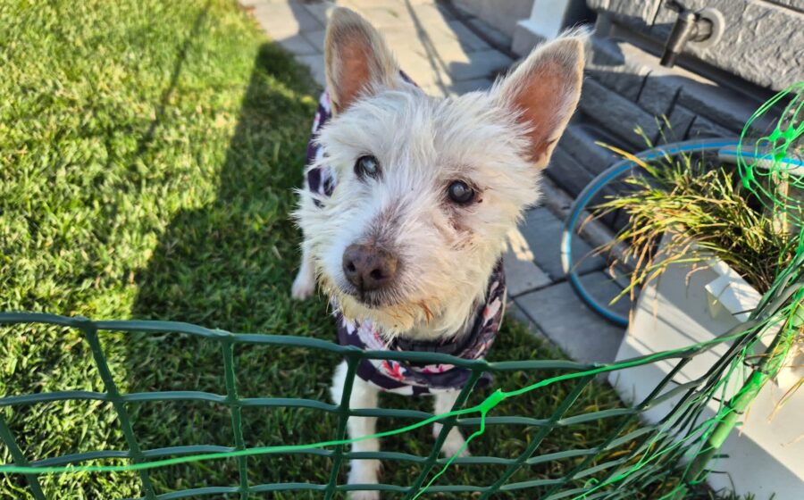 Die schüchterne Mona wurde aus einem benachbarten Shelter übernommen, nachdem sie dort aufgrund ihrer kürzlich eingetretenen Erblindung mehrfach verletzt wurde. Mit ihren 10 Jahren und ca. 35 cm sowie 9 kg zählt sie zu den kleinen Hündinnen, die im Alltag leicht zu händeln sind. Über ihre Vorgeschichte ist nichts bekannt – vieles deutet jedoch darauf hin, dass sie bisher nie die Geborgenheit eines eigenen Zuhauses erleben durfte.