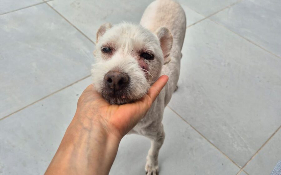 Die schüchterne Mona wurde aus einem benachbarten Shelter übernommen, nachdem sie aufgrund ihrer kürzlichen Erblindung mehrfach verletzt wurde. Mona ist 10 Jahre alt und mit Ihrer Größe von ca. 35 cm und 9 kg gehört sie zu den kleineren ihrer Artgenossen.