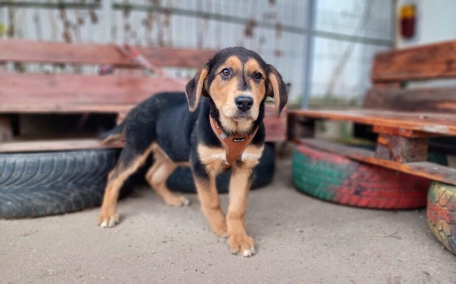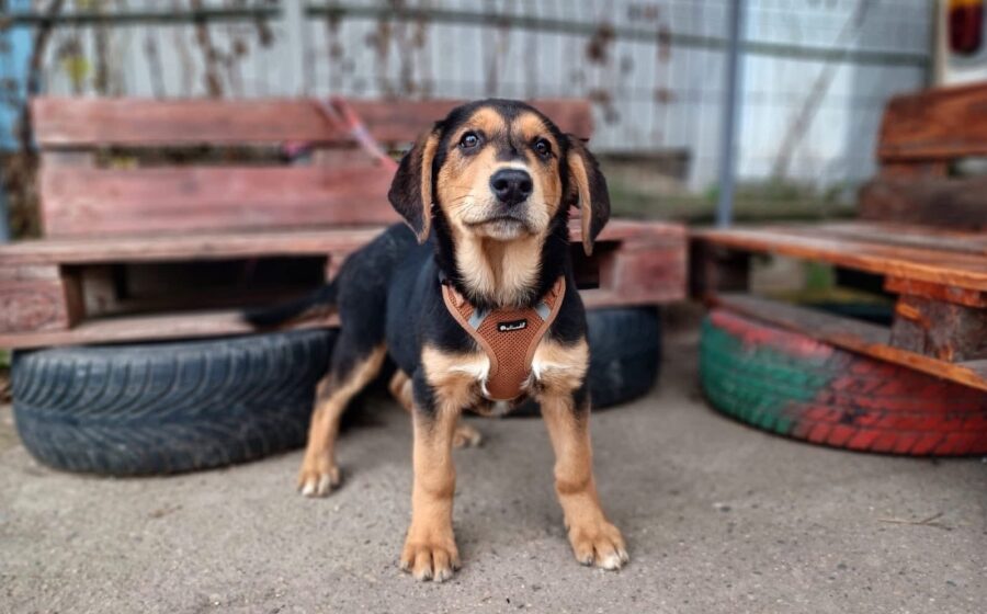 Monti ist der größte und aktivste der drei Welpen und hat ein Gesicht zum Verlieben. Der entzückende Bub im dreifarbigen Fell-Outfit lässt bereits vermuten, welch beeindruckender Rüde er im Erwachsenenalter sein wird. Mit derzeit noch ca. 37 cm Schulterhöhe und 11 kg, wird Monti zu einem vermutlich großen Format auswachsen. Die Puderzuckerschnute, mit der wunderschönen schwarz-beige-cremefarbenen Fellzeichnung ist wirklich ein Hingucker und er weiß genau, wie man treue glänzenden Welpenaugen gewinnbringend einsetzen kann. Monti liebt den Umgang mit Menschen und holt sich seine Streicheleinheiten. Er ist ein selbstbewusster und fröhlicher Bursche, der hier im Shelter auch prima mit den anderen Hunden auskommt. Daher ist es so wichtig, dass Monti bald in sein eigenes Zuhause ausreisen kann, wo er in einer sicheren Umgebung aufwachsen und sein ausgeglichener Charakter weiterhin gefördert wird. Katzen hat Monti bisher noch nicht kennengelernt.