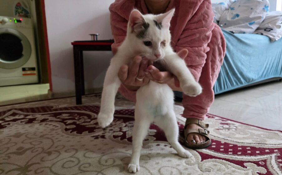 Morticia ist eine zarte junge Katze, die neuen Menschen zunächst vorsichtig begegnet. Bei Fremden zeigt sie sich schüchtern, doch sobald Vertrauen entsteht, öffnet sie ihr Herz. Zu ihrer Pflegemama hat sie bereits eine enge Bindung aufgebaut, sucht aktiv Nähe und schläft sogar mit im Bett. Mit ihrer stillen, sanften Art bringt sie viel Ruhe und Feingefühl mit – ideal für ein entspanntes, liebevolles Zuhause.