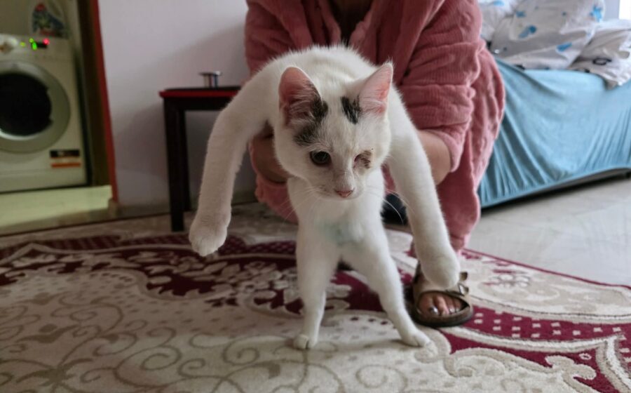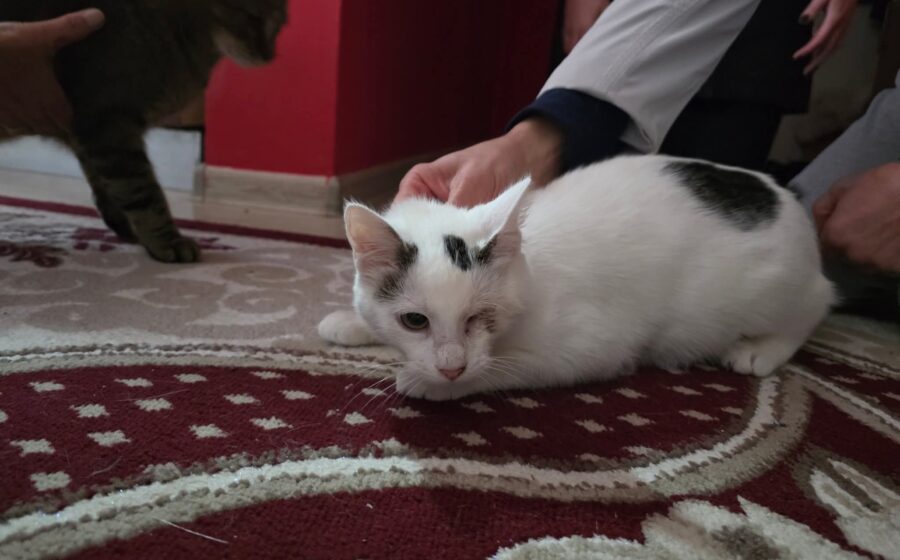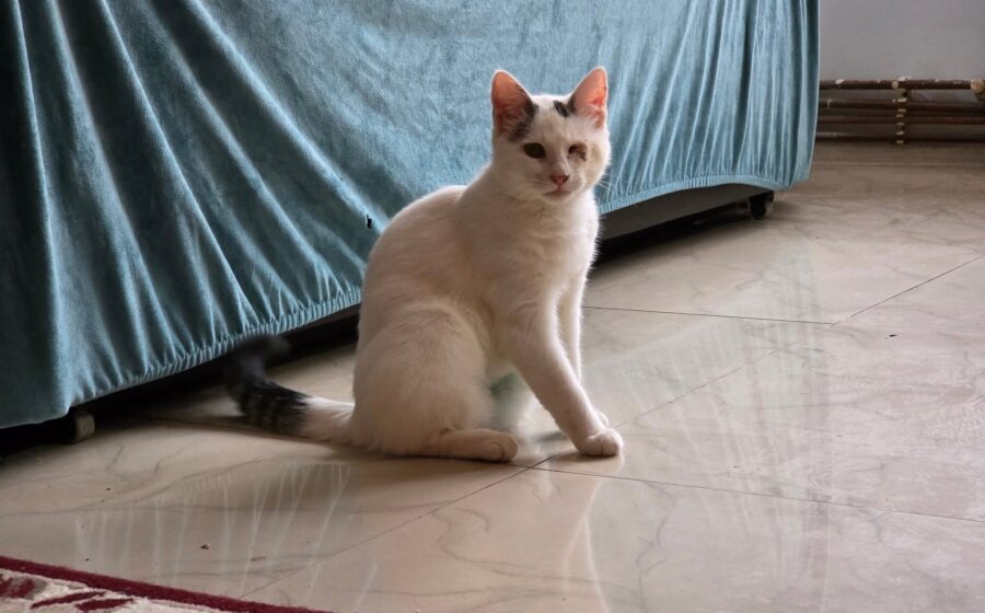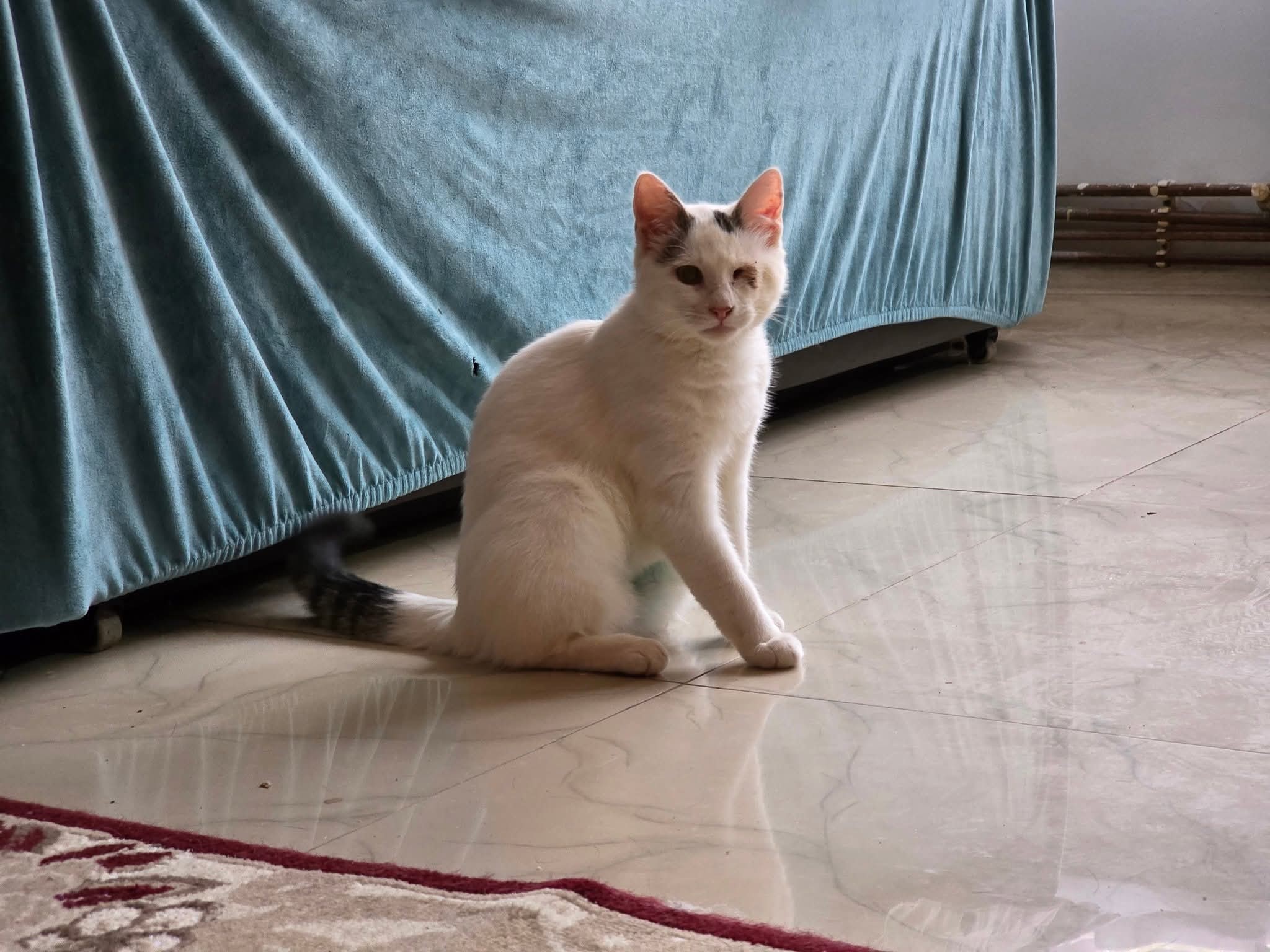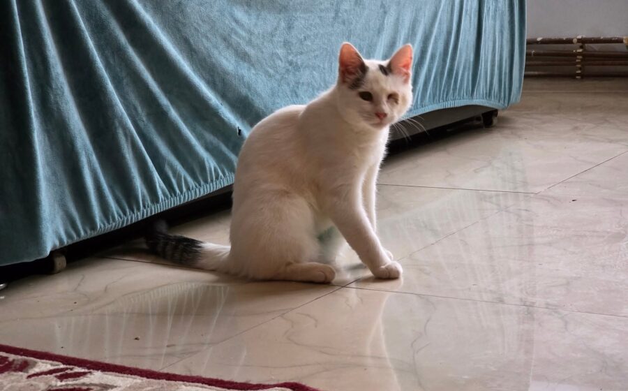 Ihre Vergangenheit war nicht einfach: Morticia wurde auf der Straße gefunden und kämpfte mit einer schweren Augeninfektion. Das linke Auge konnte trotz Behandlung nicht gerettet werden und wurde entfernt. Sie kommt damit sehr gut zurecht, bewegt sich sicher und ist im Alltag völlig unbeeindruckt.