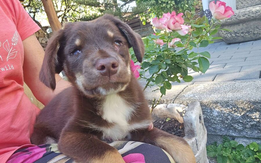 Trotz seiner Blindheit ist Najuk ein typischer Welpe, der gerne spielt und ausgiebige Kuschelstunden liebt. Mit anderen Hunden versteht er sich sehr gut. Auch Katzen sind für ihn kein Problem. Ausgewachsen wird er vermutlich einmal klein bis mittelgroß werden.