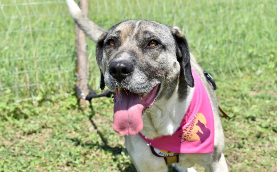 Namida ist etwa 9 Jahre alt, knapp 60 cm groß und wiegt rund 27 kg. Sie ist eine ausgesprochen freundliche, gutmütige und sanfte Hündin. Namida ist keine aktive Draufgängerin – sie ist eher ruhig, genießt ihre Ruhepausen, schläft gern und liebt Streicheleinheiten und Aufmerksamkeit. Außerhalb des Zwingers zeigt sie sich entspannt, lässt sich gerne anfassen, läuft bereits gut an der Leine und wirkt insgesamt sehr ausgeglichen. Sie lernt offenbar schnell und zeigt sich vor Ort als unkomplizierte, angenehme Begleiterin. Mit anderen Hunden kommt sie nach entsprechender Gewöhnung sicher gut zurecht. Katzen durfte sie bereits auch kennenlernen, diese haben sie nicht weiter interessiert.