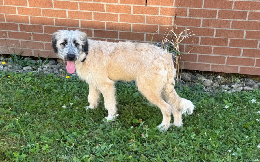 Nanuk … das ist das Inuit Wort für „Eisbär“. Und so sieht sie auch aus. Flauschig, strubbelig und wild. Nanuk ist einer der Welpen, die wir glücklicherweise lebend aus einem verlassenen Hof im hügeligen Bergland von Transsilvanien, Rumänien, retten konnten, in dem sie mit ihren Geschwistern und ihrer Mama Giselle inmitten von Müll und toten Welpen hausen mussten.