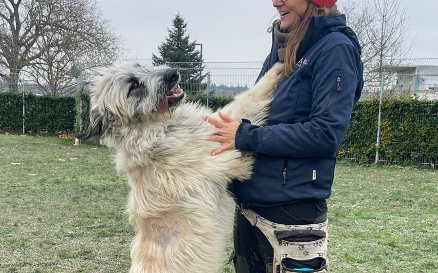 Nanuk versteht sich super mit anderen Hunden. Sie ist gut sozialisiert und sehr verspielt. Da in unserem Eisbären Herdenschutzhundgene nicht ausgeschlossen werden können, muss die Bereitschaft vorhanden sein, sich mit deren Eigenschaften auseinanderzusetzen und diese in positiver Art und Weise anzunehmen und mit ihnen umzugehen. Der Besuch einer mit positiver Verstärkung arbeitenden Hundeschule, die Erfahrung mit Tierschutzhunden und Herdenschutzhunden hat, wäre sicherlich sinnvoll und eine tolle Bereicherung für sie. Nanuk könnte ein Mioritic-Mix sein.