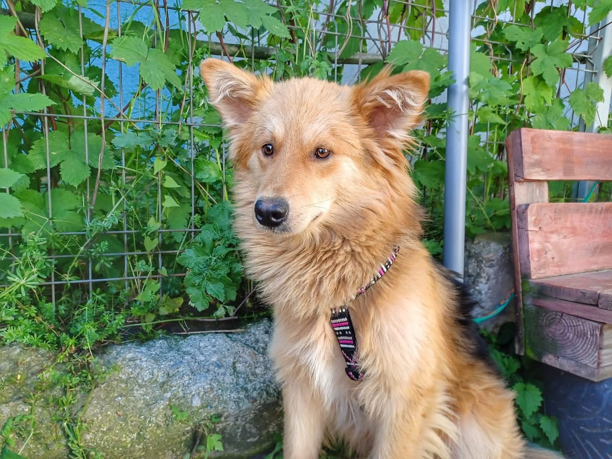 Mit seinem rotgoldenen Fell und dem aufgeweckten Blick erinnert Naru ein wenig an einen kleinen Fuchs – doch eigentlich ist er einfach nur ein fröhlicher, liebevoller Hundejunge, der endlich ankommen möchte.