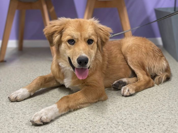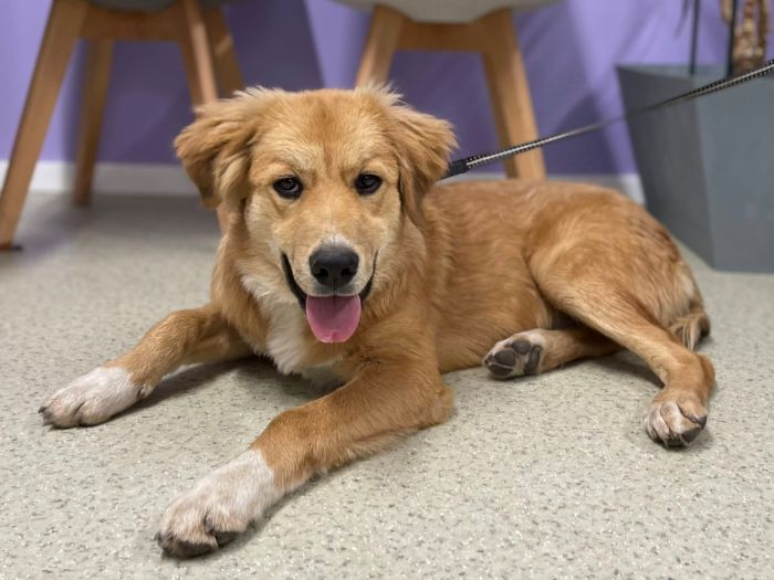 Naya sieht mit ihrem weichen, goldigen Fell wunderschön aus. Optisch geht sie momentan in Richtung Golden Retriever, aber die Optik sagt nichts über ihren wirklichen Rassemix aus – sie bleibt ein echtes Überraschungspaket. Wir gehen davon aus, dass sie ausgewachsen eher groß werden wird. Naya zeigt sich sehr freundlich, offen und junghundtypisch verspielt. Sie ist sehr menschenbezogen und sucht aktiv die Nähe. Mit anderen Hunden versteht sie sich bestens und sie liebt es mit ihnen zu spielen. Selbst Katzen gegenüber verhält sie sich aufgeschlossen und verspielt.