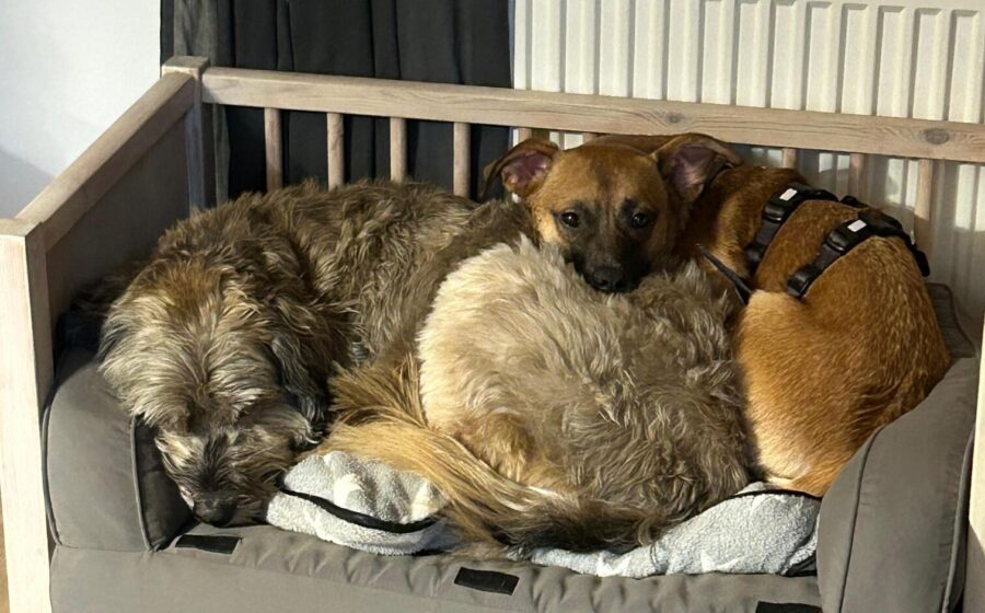Sie orientiert sich gern an anderen Hunden und fühlt sich in ihrer Gesellschaft sichtlich wohl. Ein freundlicher Hundekumpel wäre daher sicher ein Plus, ist aber keine Voraussetzung, wenn ihre neuen Menschen ihr genug Sicherheit und Vertrauen geben. Abends kommt sie inzwischen brav mit ins Schlafzimmer und legt sich zufrieden zur Ruhe – ein schönes Zeichen, wie sehr sie sich schon geöffnet hat.