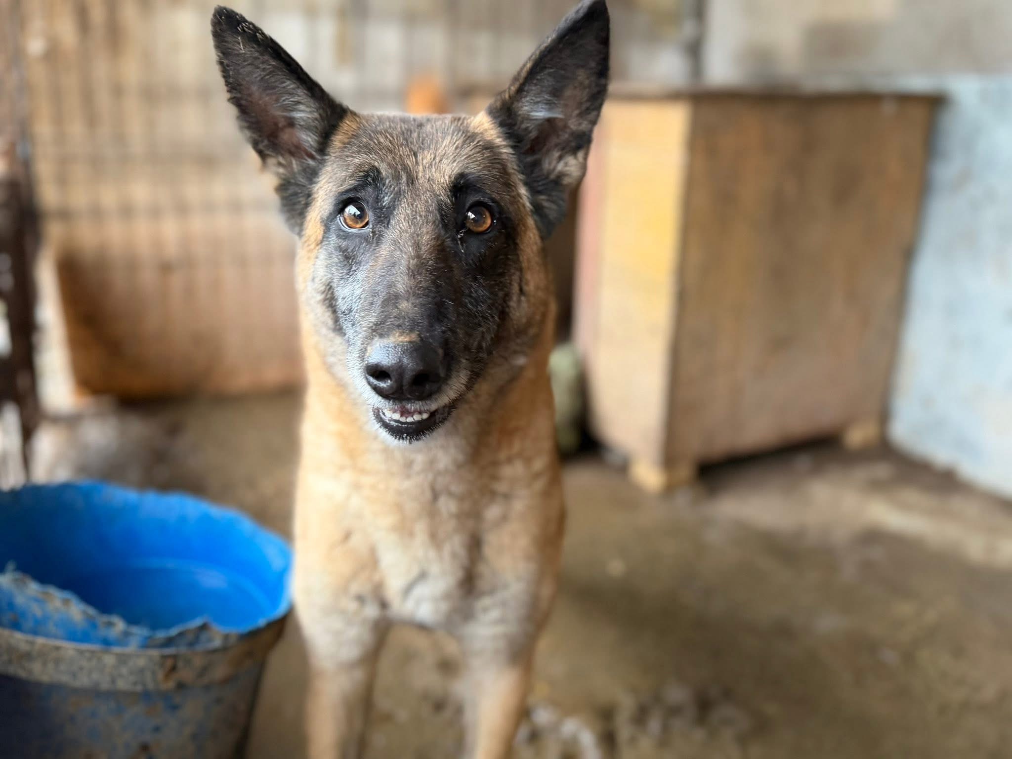 Die wunderschöne Nevada ist ca. 60 cm groß und hat blondes Fell mit einer schwarzen Gesichtsmaske, dreieckige Stehohren und ein wunderschönes, edles Gesicht. Sie ist also eine sehr sportliche Hündin mit rassetypischem Malinois-Aussehen und dem entsprechend hohen Energieniveau und wird auf ca. 5 Jahre geschätzt. Malinois-typisch bringt sie viel Intelligenz und die Bereitschaft zu lernen mit. Nevada hat fast ihr ganzes Leben noch vor sich und wir hoffen sehr, dass sie es nicht weggesperrt in einem kleinen Zwinger im Public Shelter in Baia Mare verbringen muss.