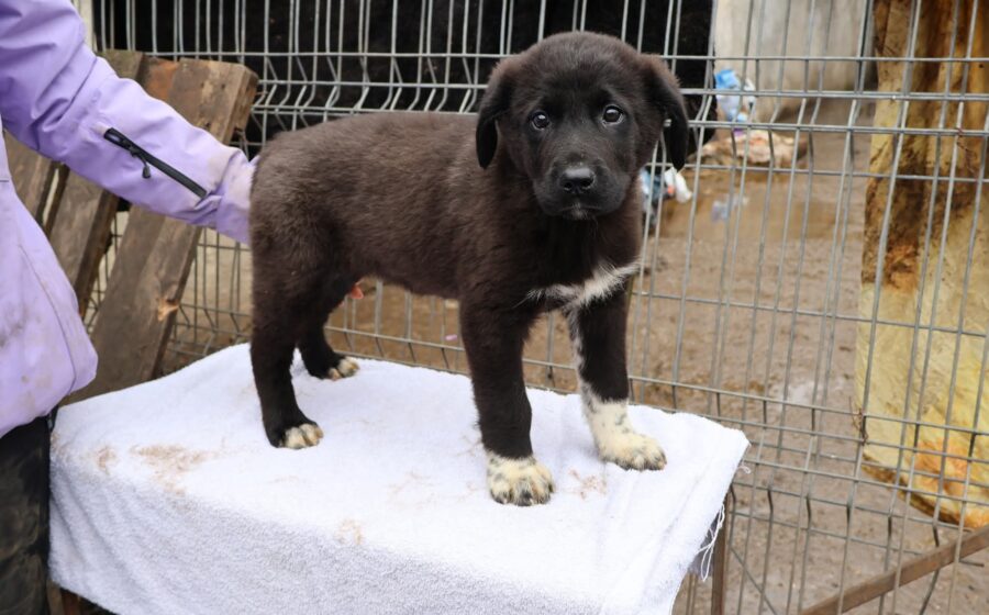 Nima ist wie ihre Schwestern Püpi, Yiska und Jella etwa 3 Monate alt und eine der vier Welpen von Mutter Ronja, die dem harten Leben beim Schäfer entkommen konnten. Ronja und ihre 12 Welpen mussten an der Kette, ohne geschützten Rückzugsort, im Winter ausharren, nur mit einer alten, modrigen Holzhütte als „Schutz“. Als unser Team eingriff, konnten nur vier Welpen gesichert werden – die übrigen seien, so sagt der Schäfer, „verschenkt“ worden. Nun leben Ronja und die vier Kleinen im Shelter in Busag und werden liebevoll versorgt.