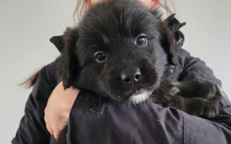 Mit seinem flauschigen schwarzen Fell und dem lustigen weißen Fleck am Kinn ist Nox ein absoluter Hingucker. Er durfte nach seiner Rettung zu seiner Lebensretterin Anca in die Pflegestelle ziehen, wo er bis zu seiner Ausreise nach Deutschland ein liebevolles Zuhause gefunden hat.