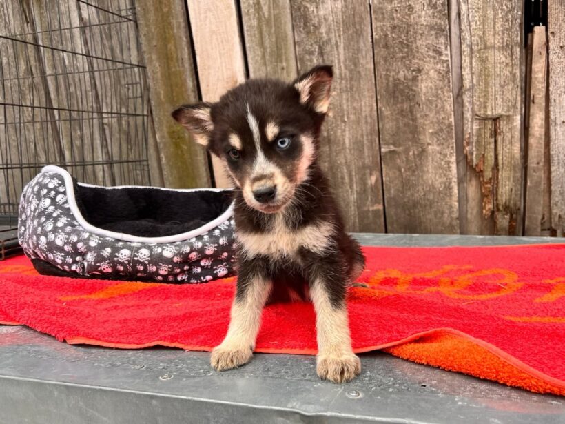 Und was für ein Kerl er geworden ist! Oakley zieht mit seinem unverwechselbaren Look alle Blicke auf sich: Ein blaues und ein braunes Auge, kombiniert mit einem dunkelbraunen Fell und seinen beigen Akzenten an Brust, Schnauze und Pfoten – einfach ein Bild von Hund!