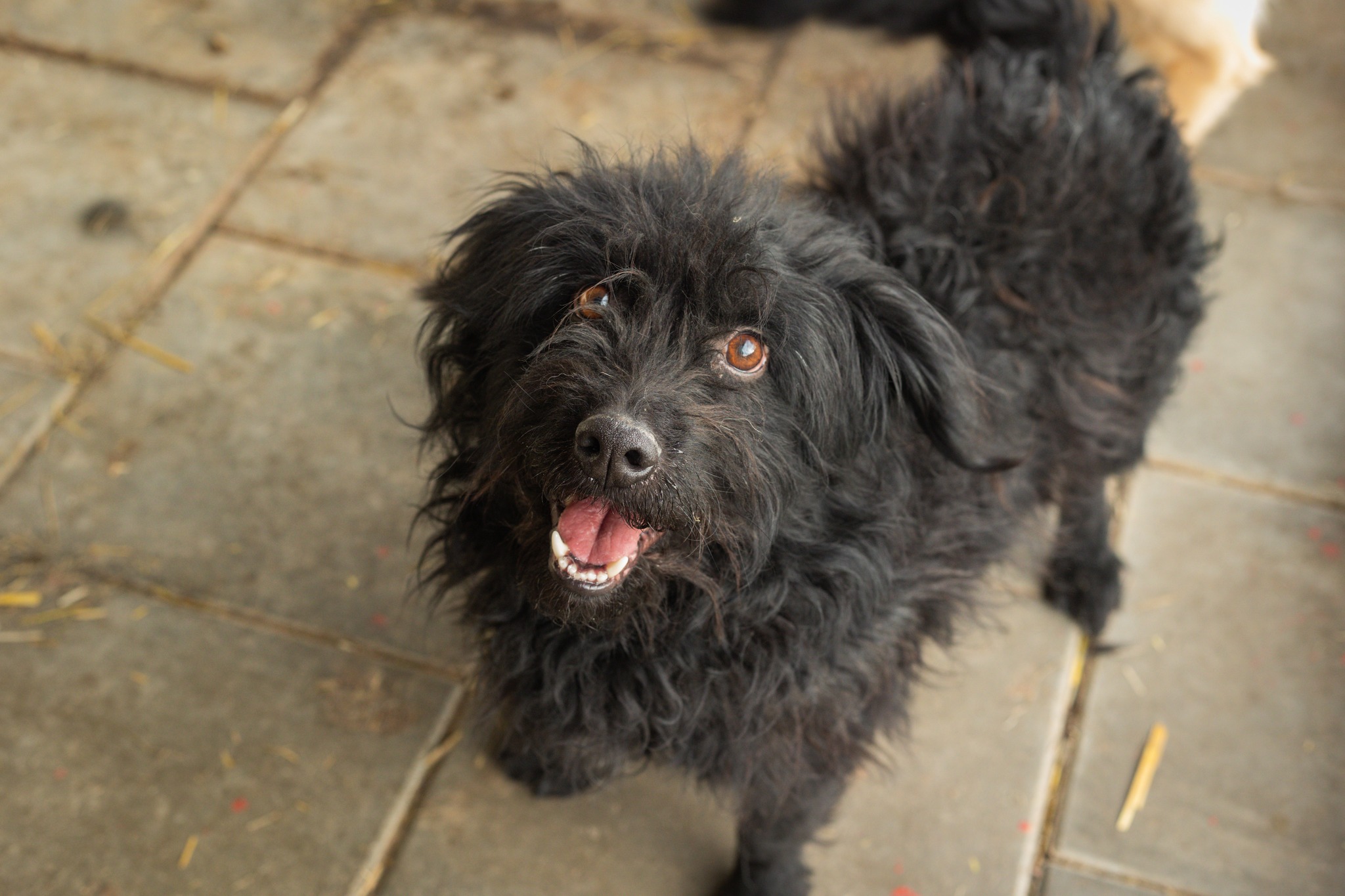 Ogir ist etwa 4,5 Jahre alt, gerade mal handliche 40 cm groß und ist ein zuckersüßer schwarzer Wuschel mit herrlich aufgeweckten, braunen Kulleraugen. Einer von diesen Hunden, die man einmal anschaut – und sofort lächeln muss.
