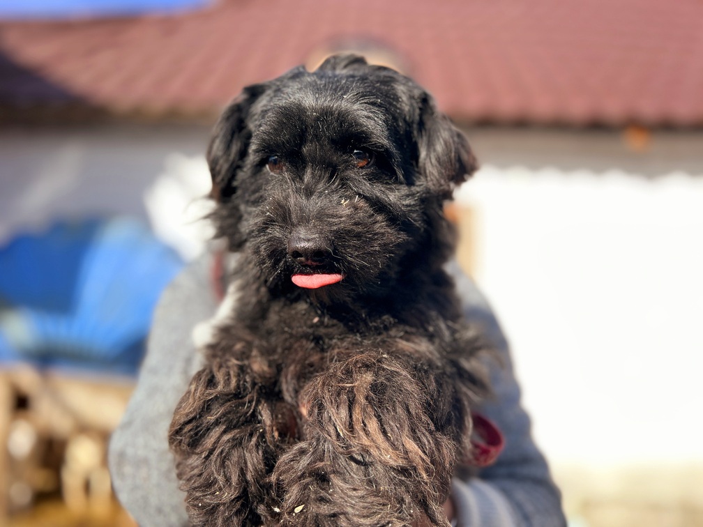 Onni ist ein kleiner Rüde mit schwarzem Fell, der im Shelter von Bistrița aktuell am liebsten unsichtbar wäre. Er wurde in einem Dorf wenige Kilometer von Bistrița entfernt ausgesetzt. Ein Mann konnte ihn sichern und brachte ihn ins Shelter. Für Onni war das vermutlich keine Rettung, die er sofort verstanden hat, sondern eher der nächste Schock in einem Leben, das ihm bisher wenig Sicherheit gegeben hat.