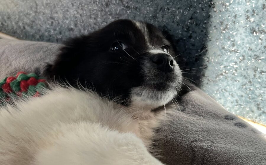Oreo ist etwa vier Monate alt, wiegt nur rund vier Kilo und wird vermutlich ein eher kleiner bis mittelgroßer Hund werden. Er ist der Typ Hund, bei dem man automatisch die Stimme eine Oktave höher stellt, weil er so niedlich ist. Seine großen dunklen Augen schauen einen an, als würde er fragen: „Nimmst du mich mit? Ich passe in jedes Herz und auf jedes Sofa.“ Dazu dieses kuschelig weiche Fell, das man am liebsten den ganzen Tag streicheln möchte – ein echter kleiner Herzensbrecher.