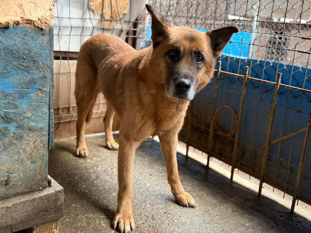Wir schätzen Ovidu auf ein Alter von 10 Jahren. Er ist ca. 60 cm groß und zählt seinem Alter entsprechend zu den ruhigen, bescheidenen Hunden, die nicht mehr viel vom Leben erwarten, aber dankbar sind für alles Gute, das es noch für sie bereithält. Ovidu hat hellbraunes Fell mit einer dunklen Zeichnung im Gesicht und spitze, dreieckige Ohren. Wir gehen davon aus, dass es sich bei ihm um einen Deutschen Schäferhund-Mix handelt. Seine Schnauze ist bereits ergraut und der Blick aus seinen dunklen Augen wirkt unsicher und enttäuscht vom Leben. Aber wenn es seinen neuen Menschen gelingt, wieder ein Lächeln in das traurige Gesichtchen zu zaubern, werden sie bestimmt mit der besonderen Treue und Dankbarkeit des Schäferhundes belohnt werden.