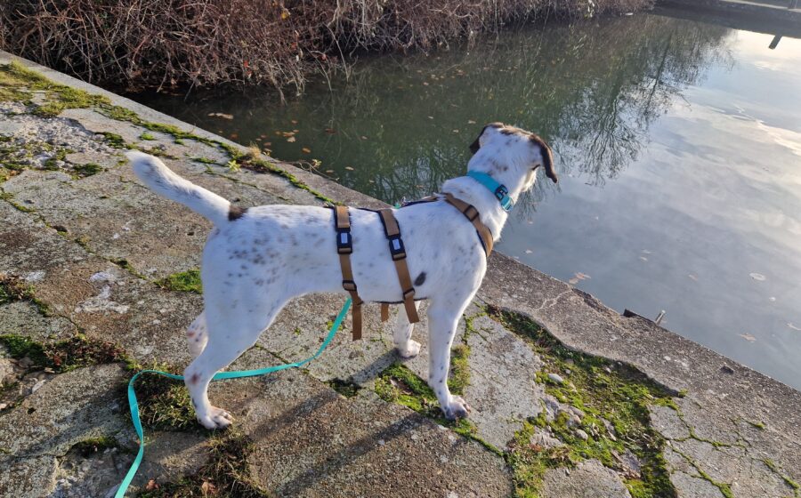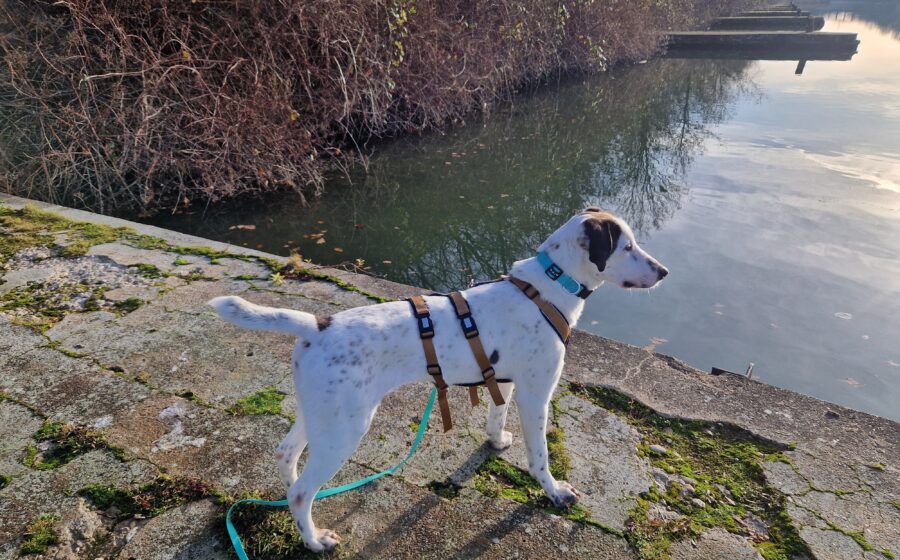 Beim Gassigehen ist Ozzy aktiv, verspielt und aufmerksam. Er orientiert sich gerne am Menschen, läuft bereits gut an der Leine und nimmt Körpersprache sowie Worte sehr bewusst wahr. Draußen bellt er anfangs gelegentlich fremde Hunde oder Männer an, lässt sich dabei aber gut ansprechen und korrigieren. Gleichzeitig zeigt er beim Spazierengehen jagdliche Motivation, weshalb hier weiterhin Training notwendig ist.