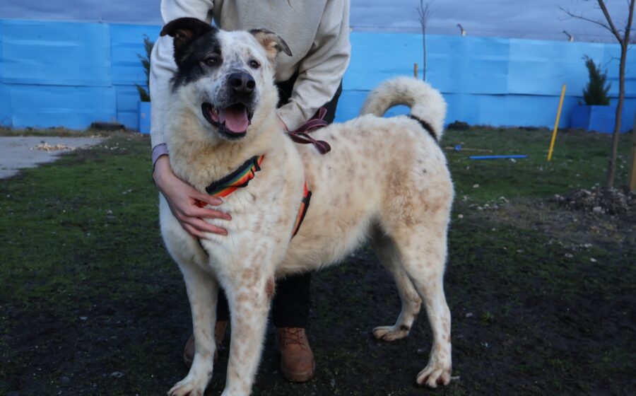 Padawan ist mittlerweile etwa 2,5 Jahre alt und stattliche 70 cm groß. Damit gehört er klar zu den großen Hunden und bringt auch optisch alles mit, was man sich unter einem imposanten Herdenschutzhund-Mix vorstellt. Sein weißes Fell und das braune „Hütchen“ über dem rechten Ohr verleihen ihm ein besonders charmantes und unverwechselbares Aussehen. Aktuell lebt Padawan im öffentlichen Shelter in Baia Mare und wartet dort auf seine Chance, endlich gesehen zu werden.