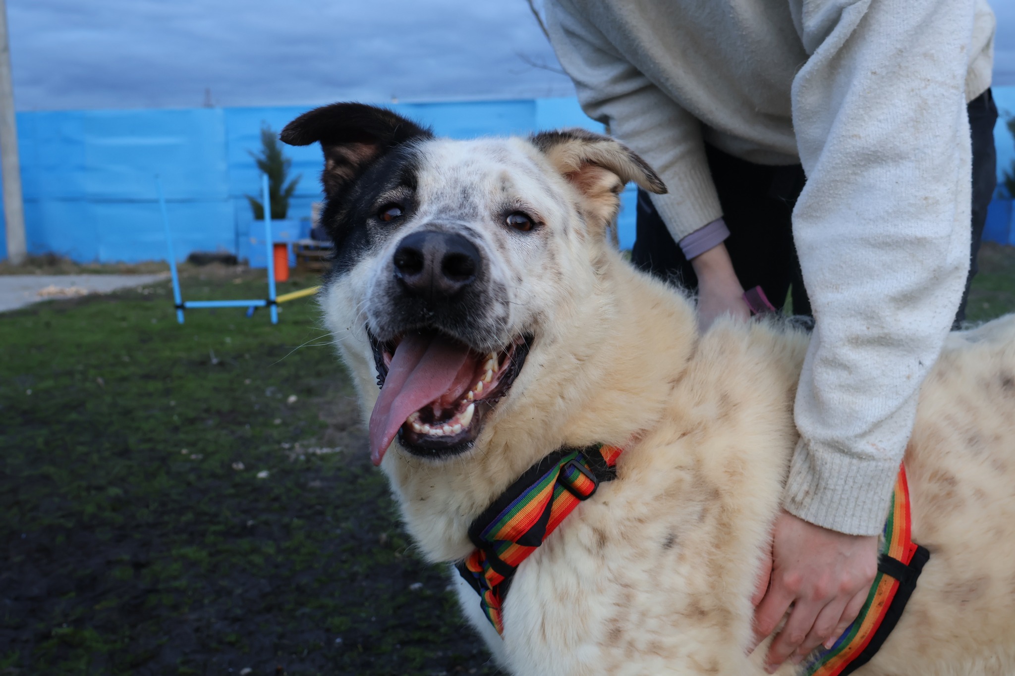 Padawan ist mittlerweile etwa 2,5 Jahre alt und stattliche 70 cm groß. Damit gehört er klar zu den großen Hunden und bringt auch optisch alles mit, was man sich unter einem imposanten Herdenschutzhund-Mix vorstellt. Sein weißes Fell und das braune „Hütchen“ über dem rechten Ohr verleihen ihm ein besonders charmantes und unverwechselbares Aussehen. Aktuell lebt Padawan im öffentlichen Shelter in Baia Mare und wartet dort auf seine Chance, endlich gesehen zu werden.