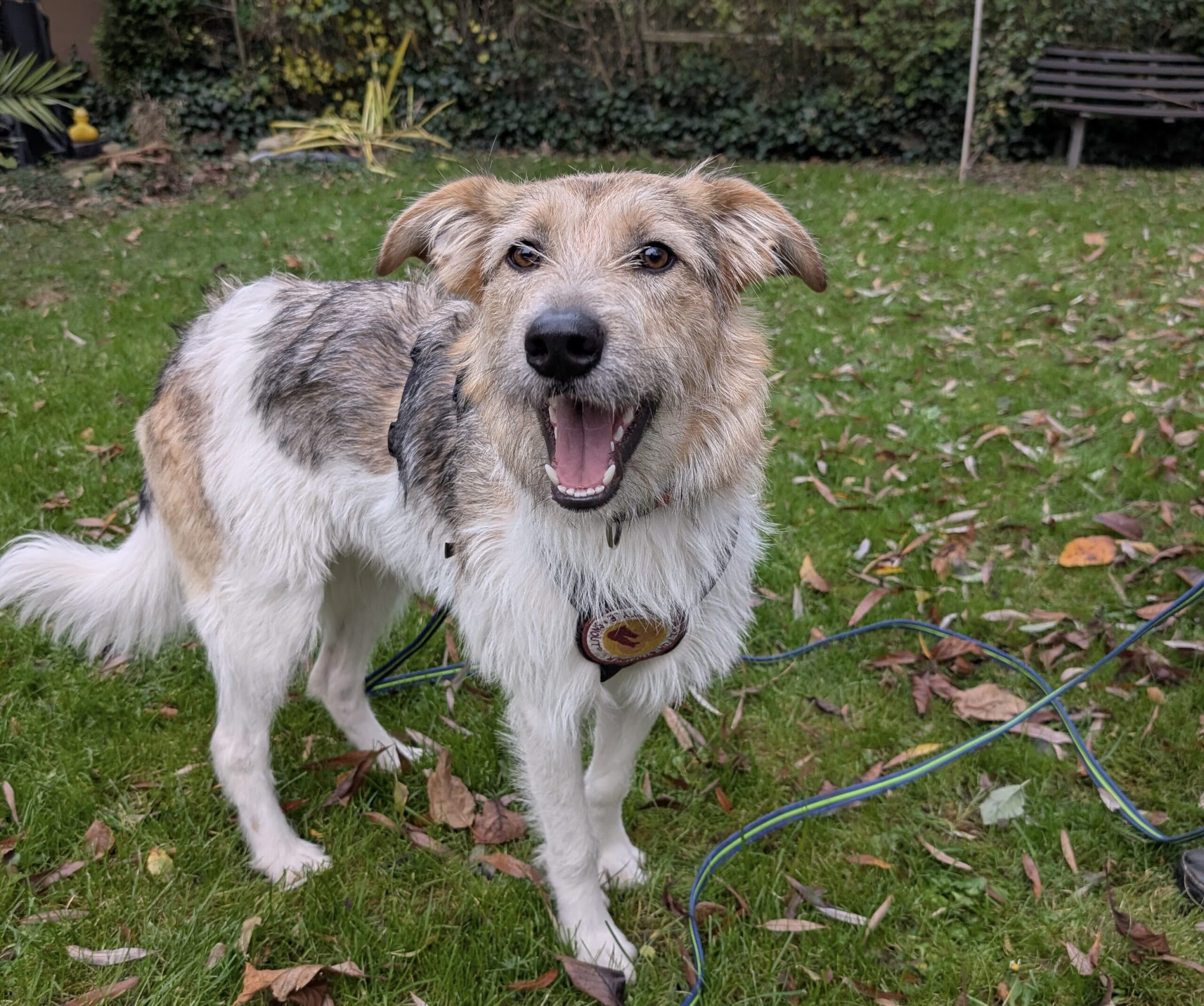 Paula ist 1 Jahr alt, etwa 60 cm groß und lebt derzeit bei ihrer Pflegefamilie in Bochum. Dort zeigt sie sich als schüchterne, aber nie ängstliche Hündin, die sich leise und liebevoll an ihre Menschen bindet. Sie ist erstaunlich anpassungsfähig und kommt sowohl im städtischen als auch im ländlichen Umfeld gut zurecht.