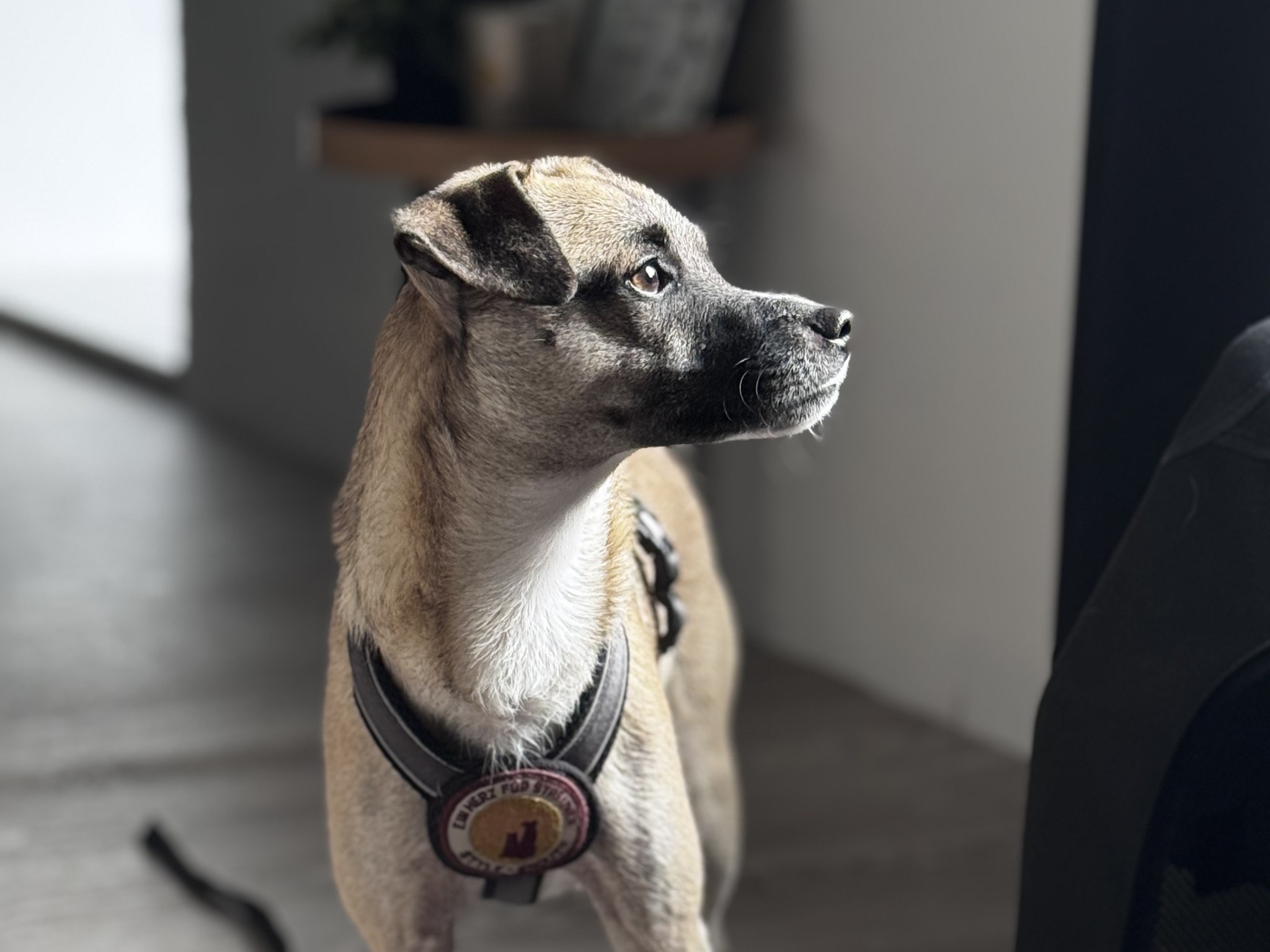 Payton steht aktuell mitten in der Pubertät, was ihre Gefühlswelt zusätzlich durcheinanderbringt. Sie ist neugierig, verspielt und voller Energie, gleichzeitig aber schnell überfordert. In neuen oder stressigen Situationen kann es passieren, dass sie urplötzlich erstarrt, obwohl es zuvor scheinbar gut lief. Dieses Verhalten ist typisch für sehr ängstliche Hunde und erfordert Menschen, die ruhig bleiben, nichts erzwingen und frühzeitig erkennen, wann es Payton zu viel wird. Erfahrung mit Hundeverhalten und Körpersprache ist daher unbedingt notwendig.