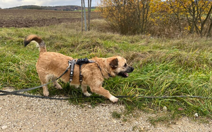 An der Leine läuft Pebbles schon sehr schön ohne zu ziehen und hört bereits erstaunlich gut auf Rückruf. Sie ist stubenrein, aktiv und entdeckt neugierig die Welt um sich herum.