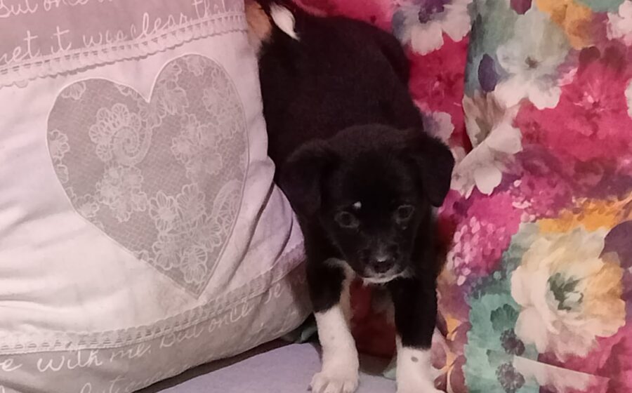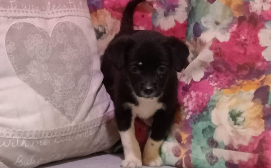 Peggy ist eine kleine, herzliche Hundedame in schwarz und weiß, die bereit ist Dein Leben auf den Kopf zu stellen! Mit 3,2 kg Gewicht und 20 cm Höhe wird Peggy voraussichtlich eher klein bleiben.