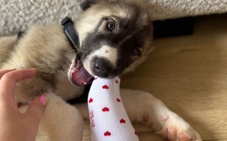 Typisch welpenhaft hat Pepe auch seine ausgelassenen Momente, in denen er herumtollt und spielerisch an Händen oder Kleidung knabbert. Wenn Pepe seine „Zoomies“ bekommt, sprüht er vor Lebensfreude und bringt alle zum Lachen! Im Gegensatz dazu ist er kein fordernder Hund, sondern beschäftigt sich auch gern mal ganz versunken mit seinem Spielzeug – ganz in sich gekehrt.
