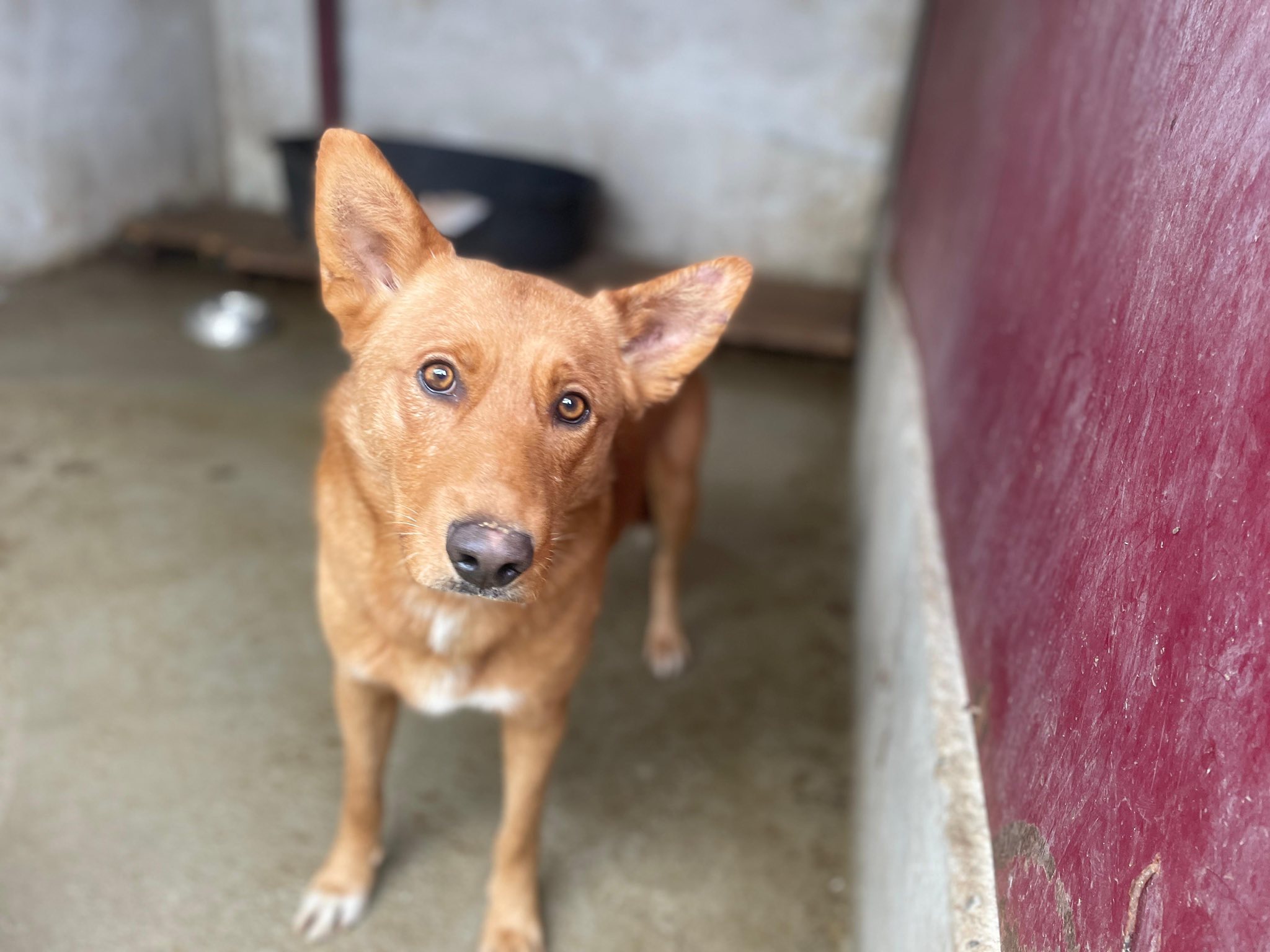 Pino ist erst ca. ein Jahr alt und ungefähr 50 bis 55 cm groß. Er hat glänzendes, rotbraunes Fell und ein wunderschönes, aufmerksames Gesicht. Mit ausdrucksvollen, hellbraunen Augen und gespitzten Ohren schaut er der Kamera entgegen. Pino scheint die Hoffnung noch nicht aufgegeben zu haben und an eine bessere Zukunft zu glauben.