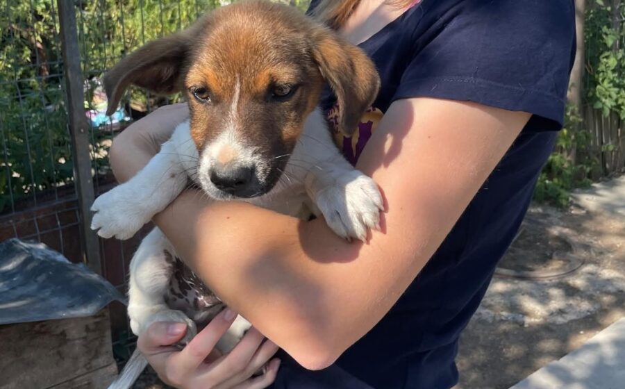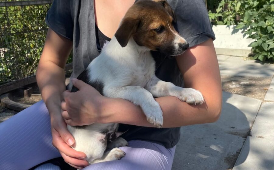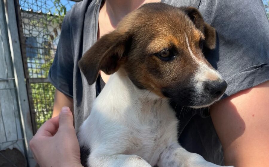 Heute blüht Pinto richtig auf. Er liebt es, mit seinen Schwestern durchs Gehege zu toben, ist neugierig, freundlich und sucht gern die Nähe von Menschen. Sein kurzes braun-weißes Fell, die süßen Schlappohren und das aufgeweckte Jack Russell-Äußere machen ihn zu einem echten Hingucker. Pinto ist etwa 3 Monate alt und wird vermutlich klein bis maximal mittelgroß. Jetzt fehlt zu seinem Glück nur noch ein liebevolles Zuhause, in dem er Geborgenheit und Sicherheit spüren darf.