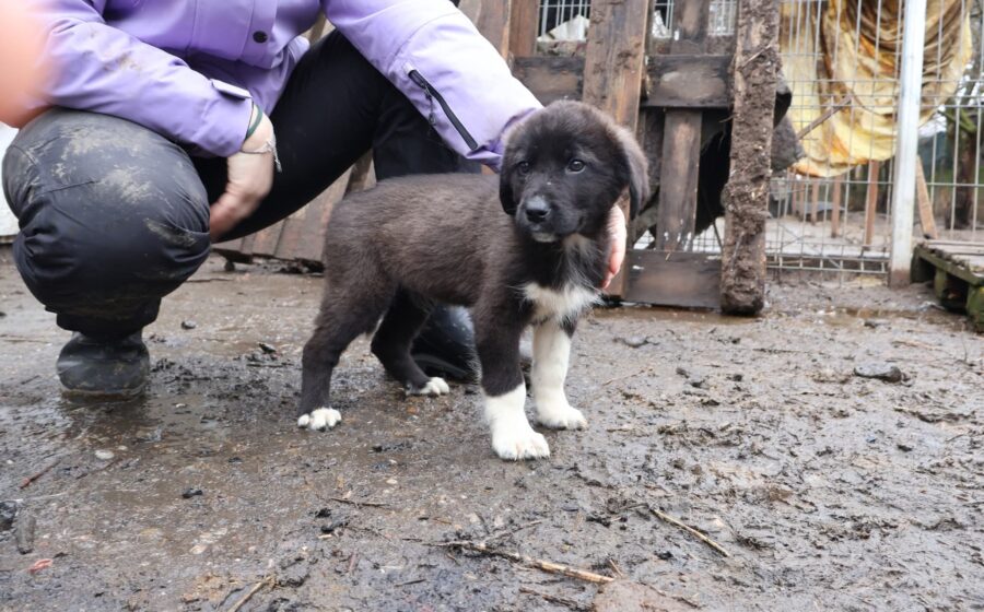 Püpi ist etwa 3 Monate alt und eine von vier überlebenden Welpen von Mama Ronja. Gerettet wurden sie von einem Schäfer, der Ronja und ihre 12 Welpen unter schlimmsten Bedingungen hielt: mitten im Winter, an der Kette, ohne wirklichen Schutz – nur eine modrige Holzhütte als „Zuflucht“. Als unser Team von der kleinen Familie erfuhr, waren nur noch vier Welpen da. Die anderen, so behauptet der Schäfer, habe er verschenkt. Ronja und ihre vier Kinder – Püpi, Yiska, Jella und Nima – leben nun im privaten Shelter in Busag, wo sie liebevoll aufgepäppelt und umsorgt werden.