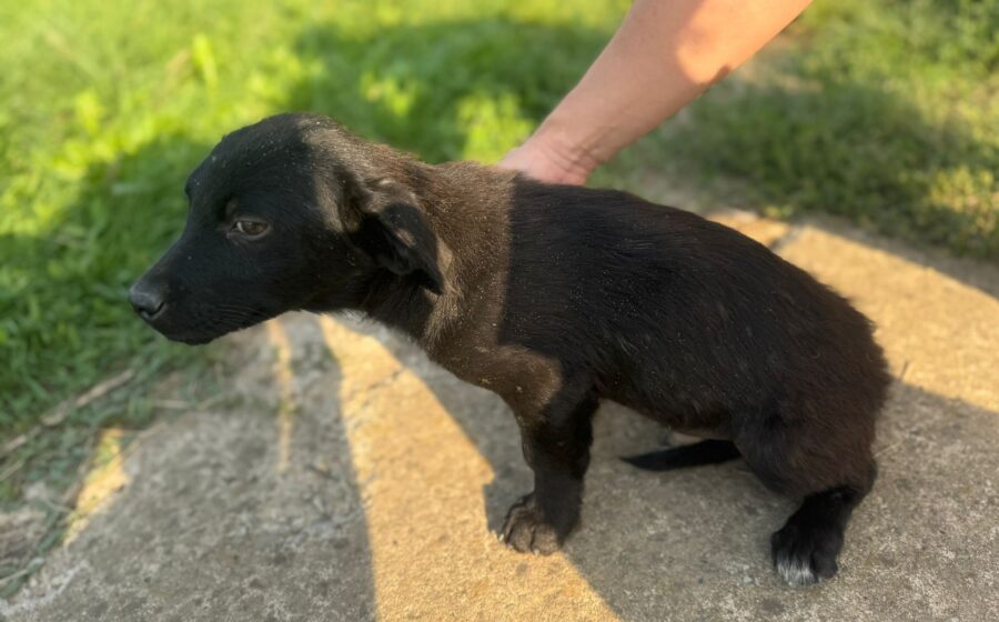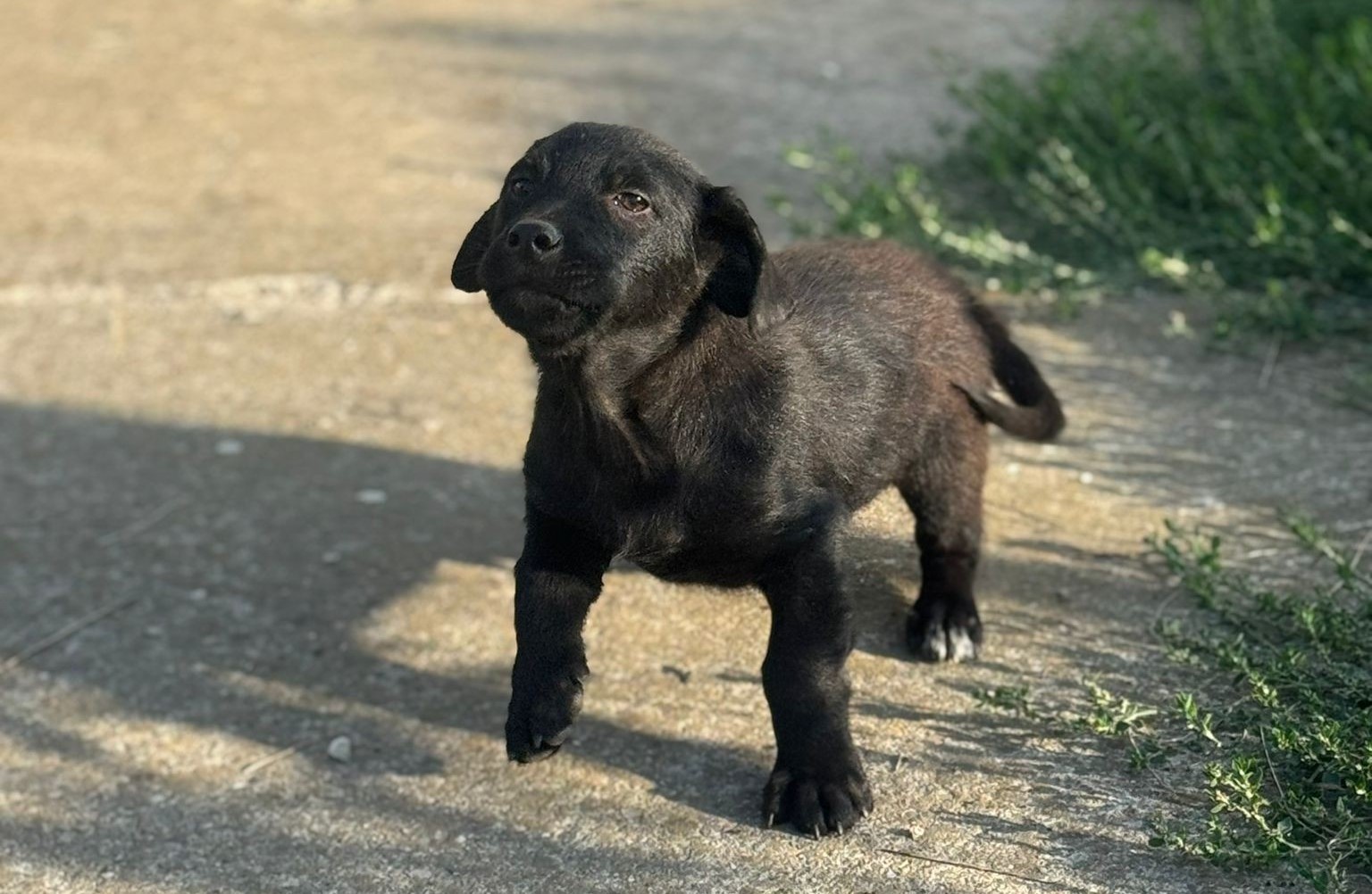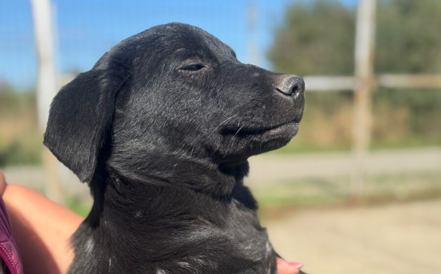 Im Gegensatz zu seinen Geschwistern ist Punto fast ein kleiner Schattenmann: Sein Fell ist tiefschwarz und glänzend, nur an seinen Hinterbeinen hat er zwei kleine weiße „Socken-Spitzen“, die ihn besonders machen. Er ist ein echter Hingucker! Genauso wie seine Geschwister ist er ein kleiner Entdecker mit einem Näschen, das immer in die Luft gestreckt wird – bereit, die Düfte der weiten Welt zu erschnüffeln und alles Neue zu erkunden.