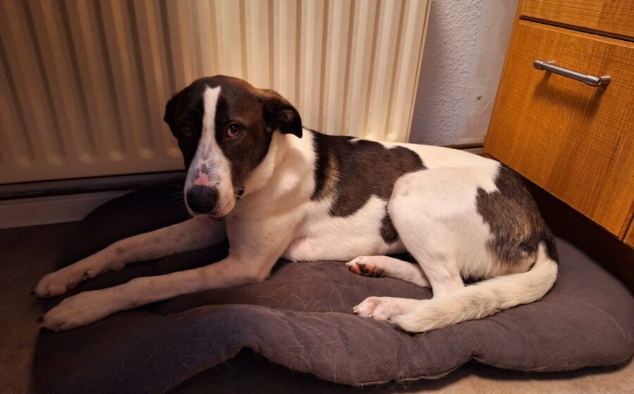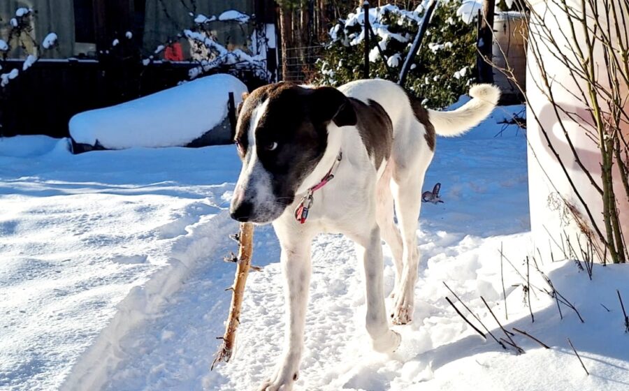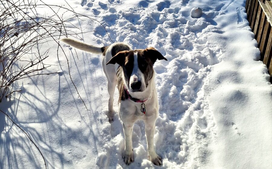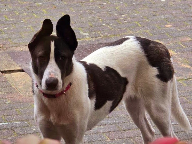 Sie ist ca. 13 Monate alt und wiegt etwa 30 kg. Sie ist eine eher große Hündin mit einer Schulterhöhe von ca. 63 cm. Raja ist eine wunderschöne weiß-braune junge Hündin und sehr anhänglich gegenüber Menschen.