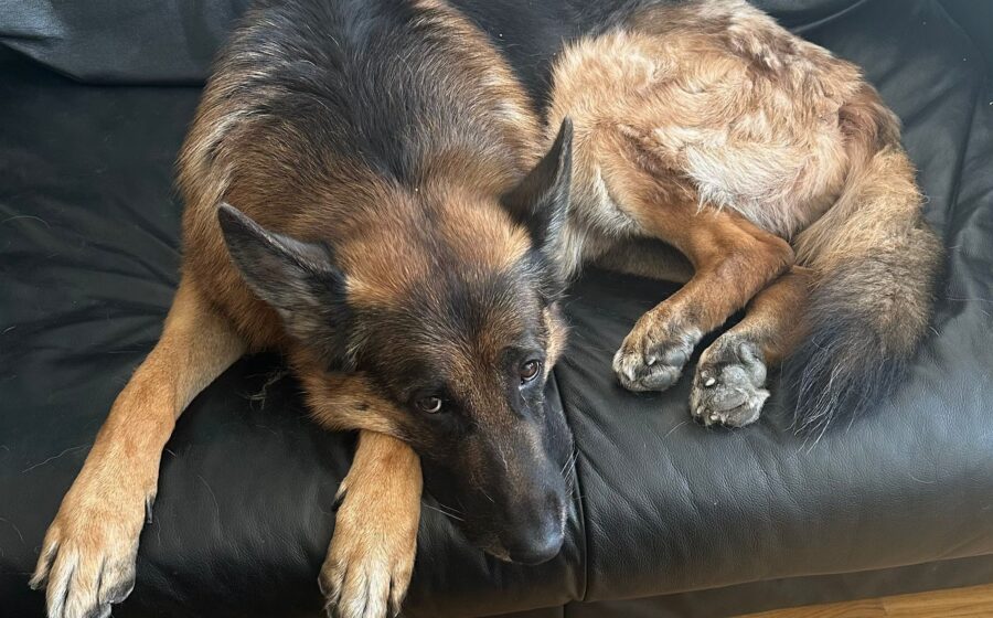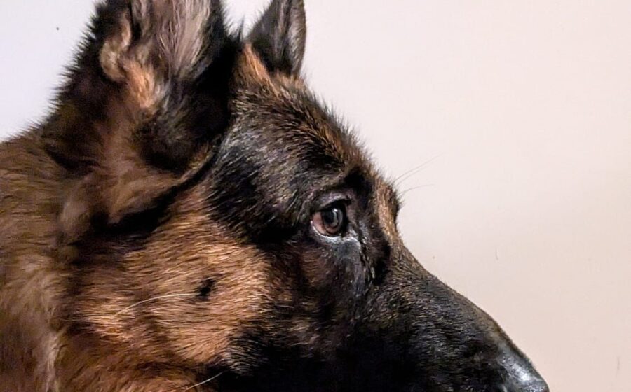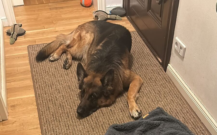 Ricky ist ein Deutscher Schäferhund, 7 Jahre alt, unkastriert, und wiegt schlanke 44 Kilo für sein Rasse und Größe. Ich habe ihn vor acht Monaten aus dem Berliner Tierheim geholt, wo er mindestens zweieinhalb traurige Jahre vorher saß. Warum kann ich nur mutmaßen, die Vorbesitzer waren wohl ein älteres Paar, das ihn, vermutlich auch mit Gewalt, als Schutzhund trainieren wollte. Vermutlich wurde seine sanfte Seele dem reinen „Gebrauch“ als Waffe nicht gerecht – und so wurde er aussortiert.