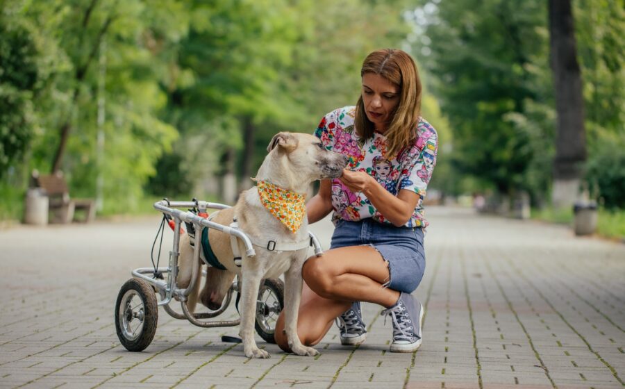In Rumänien wird Rolli liebevoll umsorgt. Seine Wunden, die durch das Hinterherziehen der Beine entstanden sind, sind gut verheilt. Allerdings hat er Schwelen an den Knien, die nicht sein müssten, wenn der Untergrund im Haus besser für ihn geeignet wäre. Seine Blase wird regelmäßig ausmassiert und er erhält spezielles Futter, um Blasenentzündungen vorzubeugen. Da er mehrfach täglich in seinen Rollstuhl gehoben und gegebenenfalls auch Stufen getragen werden muss, sollte man sich bewusst sein, dass dies eine körperliche Anstrengung darstellt, die man leisten können muss.