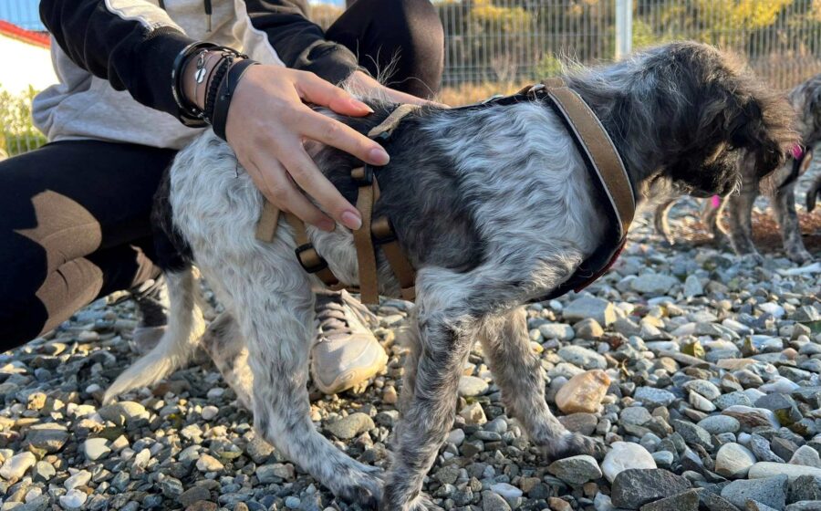 Romi ist eines dieser Hundekinder, die man sieht – und nicht mehr vergisst. Als sie gefunden wurde, war sie mit ihren Schwestern Nougi und Lola in einem schlimmen gesundheitlichen Zustand: viel zu dünn, fast kein Fell, entzündete Haut, geschwächt und vollkommen hilflos. Eine Familie fand die Welpen und brachte sie sofort in Roxanas Praxis – denn ohne Hilfe hätten die drei Mädchen keine Chance gehabt.