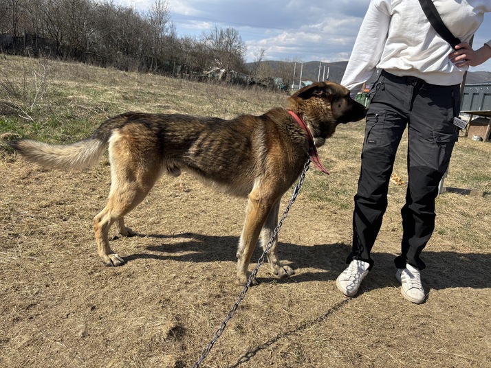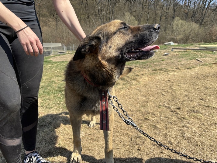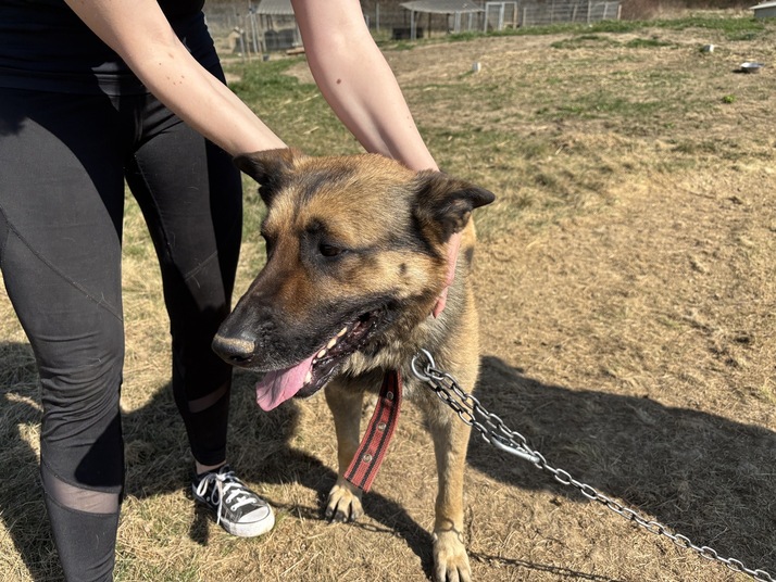 Der fünfjährige charismatische Ron gehört mit einer Schulterhöhe von etwa 65 cm zu den großen Hunden und benötigt unbedingt ausreichend körperliche Auslastung. Seinen Schäferhundgenen entsprechend möchte er auch geistig gefordert werden, liebt Denksportaufgaben und wünscht sich eine enge Bindung zu seinem Lebensmenschen oder seiner Familie. Schäferhunde gelten als überaus loyal, nervenstark und selbstbewusst. Klare Regeln und konsequente Führung sind daher besonders wichtig, damit Ron Sicherheit gewinnen kann. Ein Haus mit Garten wäre ideal für den schönen Rüden, denn er möchte sein Revier bewachen und sich frei bewegen dürfen. Im Augenblick fällt es Ron noch schwer, Vertrauen zu fassen. Er zeigt Furcht vor fremden Menschen. Wir wissen nicht, welche prägenden Erfahrungen aus seiner Vergangenheit zu dieser Unsicherheiten führen, sind uns aber sicher, dass ein erfahrener und liebender Mensch Ron das Vertrauen in sein tapferes Herz einpflanzen können wird.